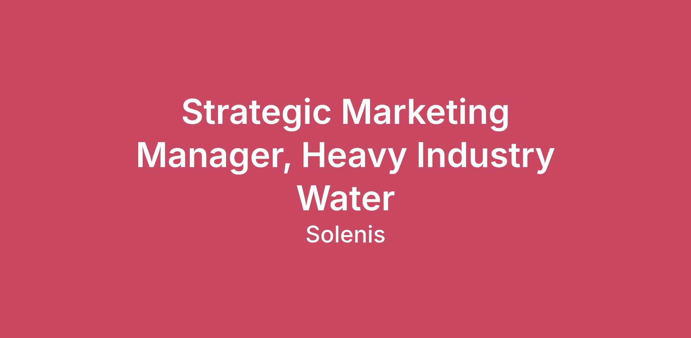 Solenis is a leading global provider of water and hygiene solutions. The company’s product portfolio includes a broad array of water treatment chemistries, process aids, functional additives, cleaners, disinfectants, and state-of-the-art monitoring, control and delivery systems. These technologies are used by customers to improve operational efficiencies, enhance product quality, protect plant assets, minimize environmental impact, and create cleaner and safer environments. Headquartered in Wilmington, Delaware, the company has 78 manufacturing facilities strategically located around the globe and employs a team of over ~23000 professionals in >160 countries across six continents. Solenis is a 2025 Best Managed Company Gold Standard honoree.For additional information about Solenis, please visit www.solenis.com or follow us on social media.Position OverviewThe Global Strategic Marketing Manager – Heavy Industry Water will play a critical role in shaping and executing growth strategies across the Pulp & Paper Water and Power sectors, and will drive accelerated growth in Water Reuse & Recycle across multiple sectors. Reporting to the Global Strategic Marketing Director, Industrial Solutions, this role will collaborate with cross-functional and regional teams to drive market expansion, strengthen customer value, and advance sustainable water management solutions in key industries.Key ResponsibilitiesConduct market, customer, and competitive analysis to guide strategic direction.Lead the development of global strategies for Pulp & Paper Water, Power and Water Reuse & Recycle.Partner with Regional Marketing, Corporate Accounts, and commercial teams to build and implement Growth Playbooks.Enable cross selling with different business units within Solenis.Represent the Industrial Water sectors in executive, regional, and strategic account forums to align and monitor strategy execution.Lead Voice of Customer initiatives and new product blueprinting for emerging opportunities in water reuse, circular economy, and sector-specific technologies.Own and maintain accredited market data (market size / market CAGR) and ensure alignment across global and regional teams.Develop sector-specific value propositions and ensure adaptation to unique regional requirements.Support management systems that translate strategic objectives into measurable results.QualificationsBachelor’s or Master’s degree in engineering, business, or a related technical field; MBA preferred.Water Treatment experience highly preferred.Minimum 5 years of professional experience in the industrial water, power generation, pulp and paper, or sustainability sectors.Proven B2B marketing or strategic experience in a multinational environment.Strong collaboration and communication skills with the ability to engage across multiple organizational levels.Fluent in English; additional major regional language a plus.Strong analytical, structured, and strategic problem-solving skills.Customer-focused mindset with demonstrated ability to connect industry needs with value-driven solutions.Knowledge of water reuse, recycling, or circular economy practices highly desirable.Why Join SolenisThis role provides the opportunity to directly influence the growth trajectory of essential industries, while reinforcing Solenis’ leadership in sustainable water management across global markets.We understand that candidates will not meet every single desired qualification. If your experience looks a little different from what we’ve identified and you think you can bring value to the role, we’d love to learn more about you.At Solenis, we understand that our greatest asset is our people. That is why we offer competitive compensation, comprehensive benefits which include medical, dental, vision & 401K, and numerous opportunities for professional growth and development. So, if you are interested in working for a world-class company and enjoy solving complex challenges, whether in the lab or the field, consider joining our team. Solenis is proud to be an Equal Opportunity Affirmative Action Employer, including Minorities / Women/ Veterans / Disabled. All qualified applicants will receive consideration for employment without regard to race, color, religion, sex, sexual orientation, gender identity, national origin, or protected veteran status and will not be discriminated against on the basis of disability. Should you require assistance in applying to this opportunity, please reach out to Solenis Talent Acquisition at talentacquisition@solenis.comThe expected compensation range for this position is between $93,530.00 and $155,890.00 plus discretionary bonuses. The exact compensation may vary based on your skills, experience and other factors permitted by law.