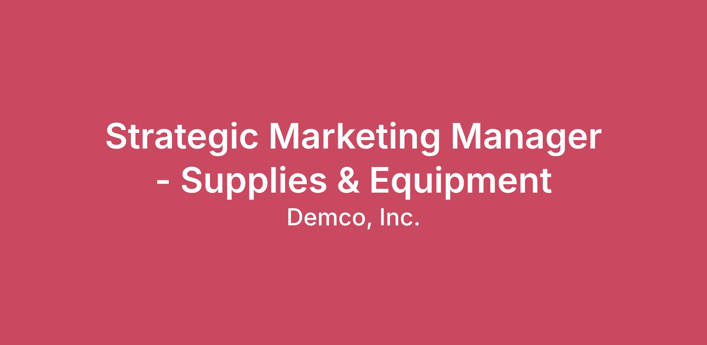 At Demco, our work is rooted in a deep belief that schools and libraries change lives. From early learning spaces to lifelong community hubs, we are passionate about creating environments that inspire curiosity, support educators, and strengthen communities. If you’re energized by meaningful work and want to help shape how learning happens, this is your opportunity to make an impact.We are seeking a Strategic Marketing Manager to lead growth within our Supplies and Equipment division, with a strong focus on eCommerce. This role is ideal for someone who thrives at the intersection of strategy and execution, someone who can see the big picture while also rolling up their sleeves to bring campaigns to life.In this role, you will set the direction and drive the execution of omni-channel marketing initiatives that connect with educators, librarians, and institutions across K–12, public libraries, and higher education. You will play a key role in ensuring our products and solutions reach the people who rely on them to create engaging, effective learning environments.What You'll Do:Lead end-to-end marketing strategy and execution for assigned product categories, with a focus on driving eCommerce growth and revenue Develop and manage a seasonal promotional calendar aligned to business priorities, product strategies, and key demand periods Create and execute integrated, multi-channel campaigns across eCommerce, catalogs, email, onsite merchandising, and paid media Partner closely with product, pricing, and sales teams to align on priorities, promotions, and assortment strategies Bring our categories to life through compelling storytelling across both digital and print channels Collaborate with external partners to amplify campaigns while maintaining ownership of strategy and performance Monitor and optimize campaigns using key performance metrics such as conversion rate, average order value, and revenueIdentify growth opportunities using customer insights, historical performance, and market trends Serve as the marketing lead for your category, ensuring alignment and clarity across cross-functional teamsWhat You Bring:Bachelor’s degree in marketing, business, or a related field At least 5 years of experience in eCommerce marketing, category marketing, or campaign management Proven success driving revenue through multi-channel campaigns Experience managing promotional calendars and seasonal campaignsStrong understanding of omnichannel environments, including both digital and print (catalog experience is a plus) Ability to collaborate across teams including Product, Creative, and Performance Marketing Experience working in product-driven or SKU-heavy environments preferred Strong analytical skills with the ability to interpret data and translate insights into action Excellent organization and project management skills with attention to detail A customer-first mindset and a passion for using insights to drive decisionsWhy Demco:At Demco, you’re not just building campaigns, you’re helping schools and libraries thrive. Our team is deeply connected to the communities we serve, and that purpose shows up in the way we collaborate, innovate, and support one another. We believe meaningful work drives engagement, and we are committed to creating an environment where our employees can grow while making a difference.If you’re looking for a role where your work directly supports education and community impact, we’d love to hear from you.Work Location: Remote