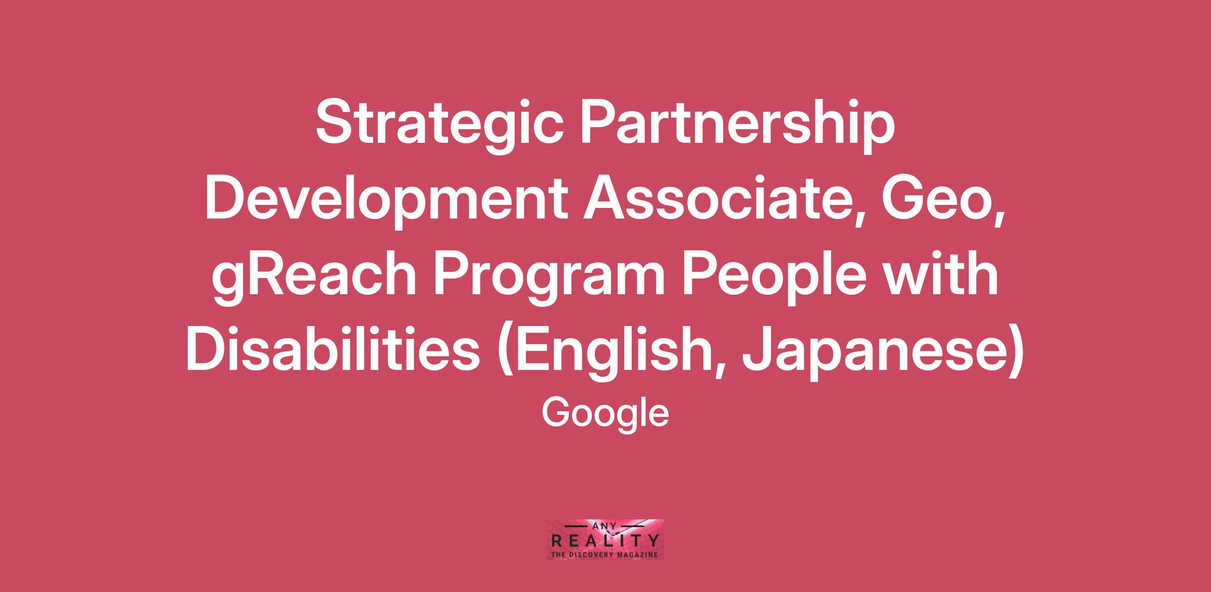 Google Geo's mission is to power the most helpful, trusted, and innovative digital representation of the real world for the user ecosystems we serve on geospatial products including Google Maps, Google Earth and Google Maps Platform. We will pursue this mission globally, with opportunities across the Asia Pacific region to improve the lives of billions of users. Geo is dependent upon a wide range of external partnerships across areas such as data licensing, strategic partnering, value exchange agreements and technology licensing. Japan is critical in achieving Geo's mission and the opportunity to drive the market for delivering against our stated partnership goals is indeed significant.