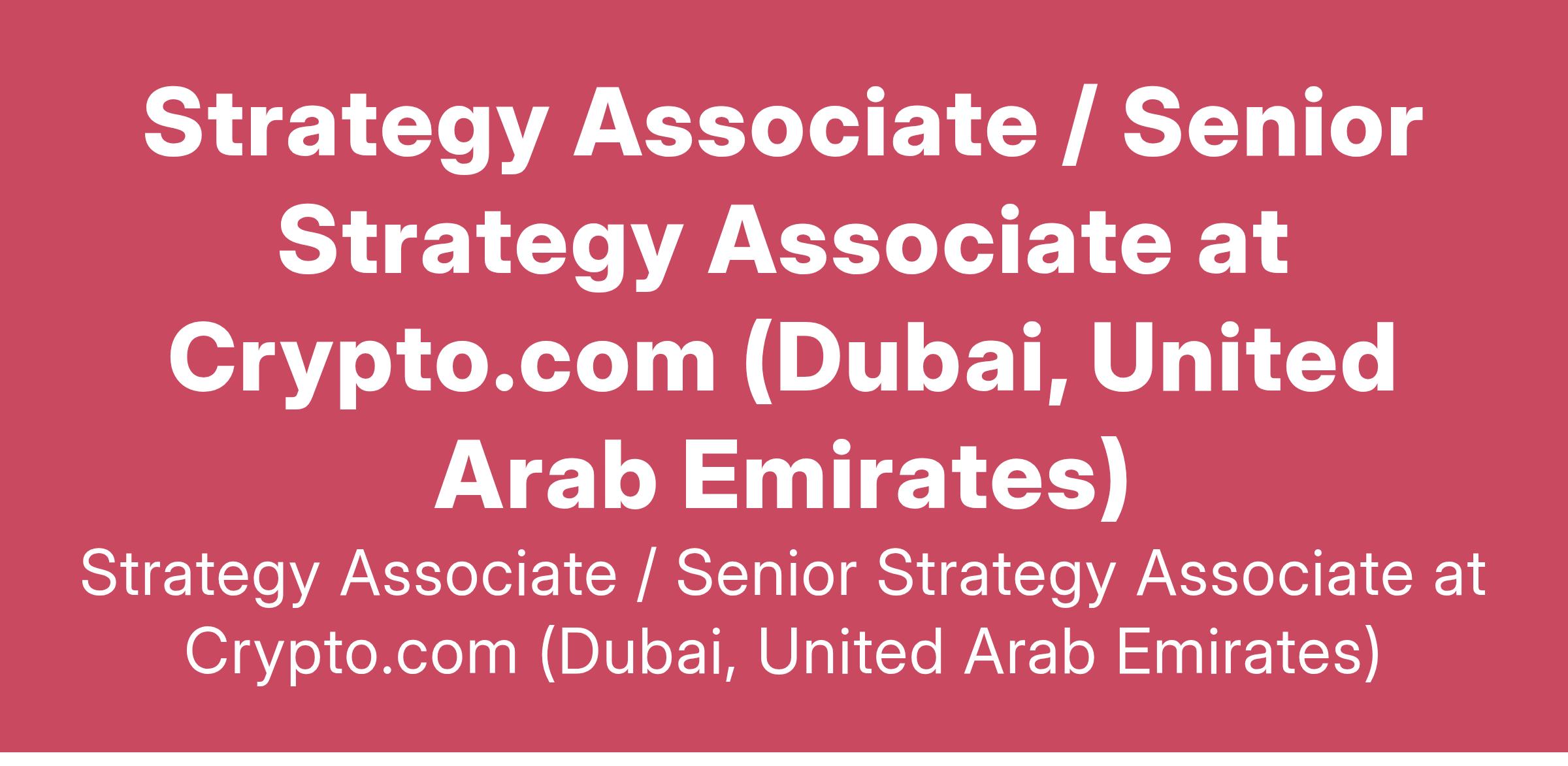 Strategy Associate / Senior Strategy Associate at Crypto.com (Dubai, United Arab Emirates)