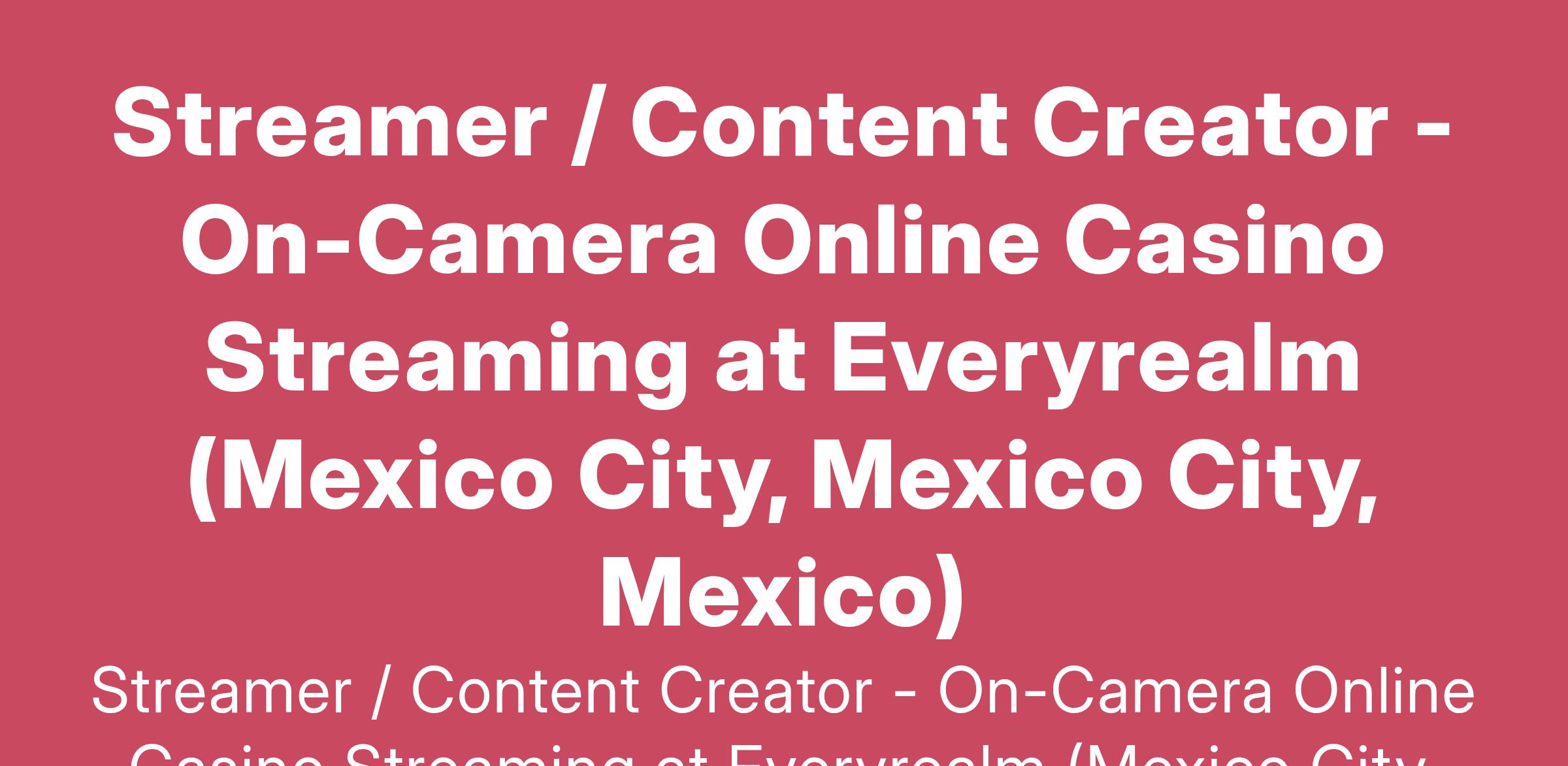 Streamer / Content Creator - On-Camera Online Casino Streaming at Everyrealm (Mexico City, Mexico City, Mexico)