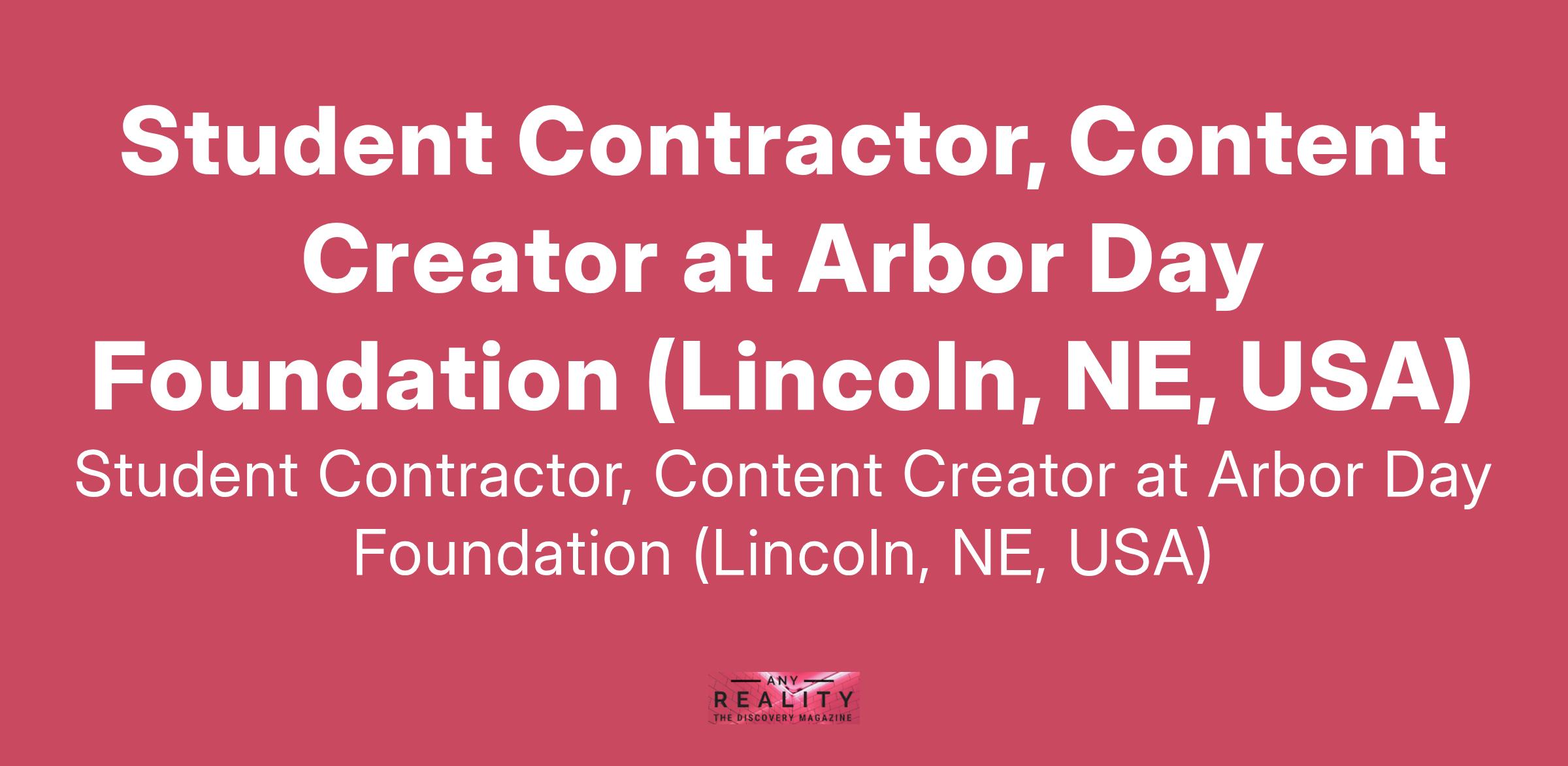 Student Contractor, Content Creator at Arbor Day Foundation (Lincoln, NE, USA)