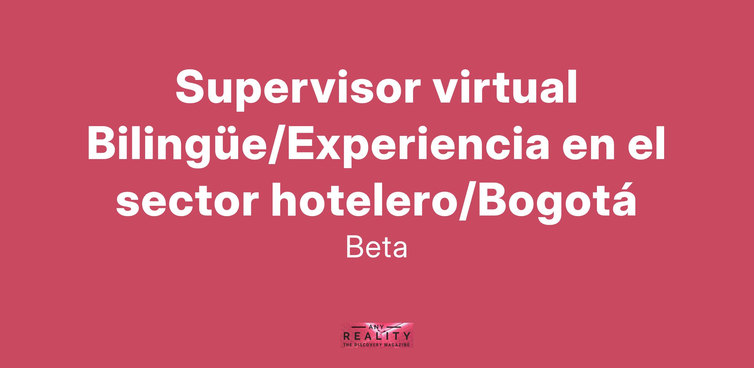 Importante empresa del sector Hotelero se encuentra en búsqueda de Supervisor virtual Bilingüe. Bachiller con experiencia en recepción Hotelera de 2 años preferible o experiencia administrativa.