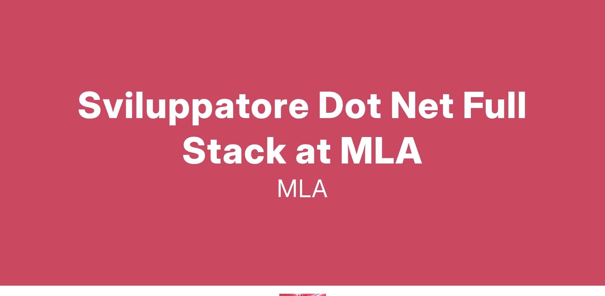 Sviluppatore Dot Net Full Stack at MLA