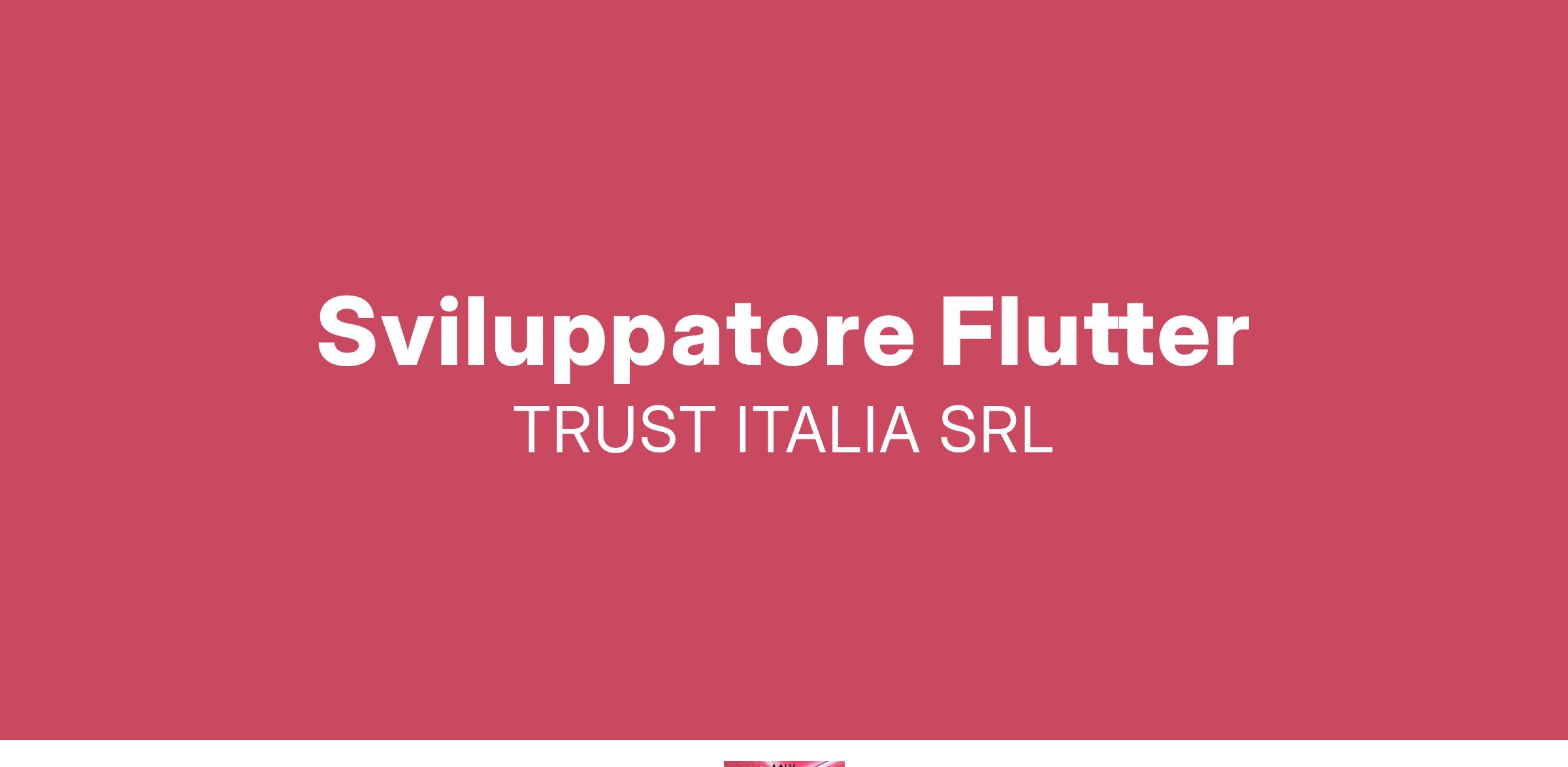 Trust Italia Srl è una società di consulenza informatica nata da professionisti del settore di decennale esperienza offre soluzioni globali per l’informatica negli ambienti web e non solo. Soluzioni che sono il punto d’incontro tra un ampio bagaglio di competenze progettuali e le più avanzate metodologie di sviluppo. Genera valore nelle aziende fornendo soluzioni in grado di far funzionare il loro business. Trust Italia ha un forte Know How in ambito bancario / Assicurativo nonché è fortemente legata allo sviluppo di applicativi custom per tutti gli altri settori tra cui : Servizi, Oil&gas, Sanità. Attualmente stiamo cercando: 1 Sviluppatore Flutter Disponibilità immediata e/o a breve.