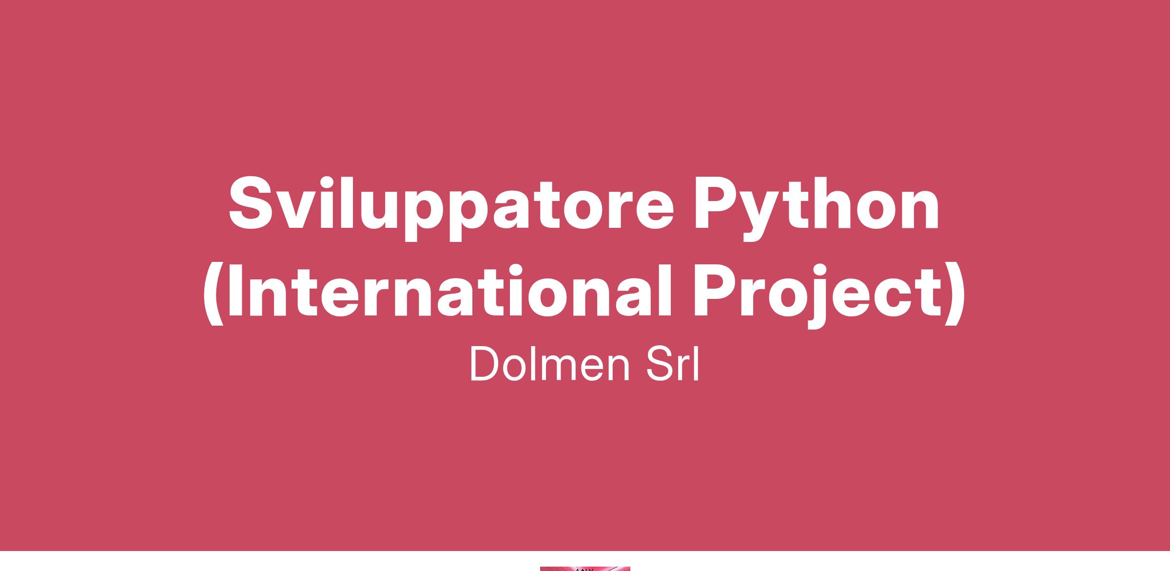 Dolmen S.r.l. società di consulenza informatica e sviluppo software nata da professionisti di decennale esperienza nel settore ICT, cerca per inserimento immediato nel suo organico: Sviluppatore Python Per un importante progetto internazionale focalizzato sull'anagrafica aziendale, stiamo ricercando sviluppatori Python motivati e competenti, pronti a contribuire al successo di una piattaforma all’avanguardia in un contesto internazionale. Requisiti principali • Almeno 3 anni di esperienza come sviluppatore Python. • Conoscenza approfondita di SQL e delle seguenti librerie: o SQL Alchemy o Pandas o Pytest o mypy o pylint • Familiarità con i principi SOLID : o Principio della singola responsabilità (Single responsibility principle) o Principio aperto/chiuso (Open/closed principle) o Principio di sostituzione di Liskov (Liskov’s substitution principle) o Principio della segregazione delle interfacce (Interface segregation principle) o Principio dell'inversione delle dipendenze (Dependency inversion principle) • Inglese fluente , sia scritto che parlato. • Capacità di lavorare in contesti internazionali Modalità di lavoro : Il lavoro sarà svolto principalmente da remoto, ma è richiesta la disponibilità per alcune trasferte iniziali a Monaco di Baviera. Completano il profilo: ottime doti relazionali e predisposizione al contatto con il cliente, capacità di lavorare in team, forte orientamento al risultato, flessibilità, entusiasmo nell'affrontare nuove sfide e attitudine all'apprendimento continuo. Invitiamo i candidati interessati a inviare il proprio curriculum vitae in formato Word, dettagliando accuratamente i ruoli ricoperti e le tecnologie utilizzate, completo di autorizzazione al trattamento dei dati personali, all'indirizzo email: Il presente annuncio è rivolto a entrambi i sessi, ai sensi delle leggi 903/77 e 125/91, e a persone di tutte le età e tutte le nazionalità, ai sensi dei decreti legislativi 215/03 e 216/03.