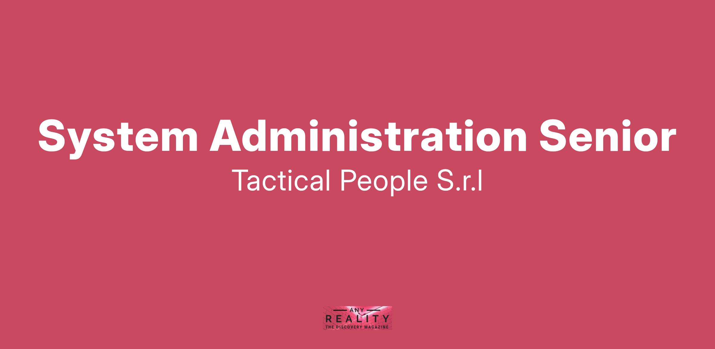 Unisciti a TACTICAL PEOPLE: Innovazione, Persone e Crescita nel Cuore della Digital Transformation Da oltre 20 anni, TACTICAL PEOPLE si posiziona come leader nel mercato ICT, guidando con passione e competenza i nostri clienti di medie e grandi dimensioni attraverso il dinamico percorso della digital transformation. La nostra mission è chiara: non solo abbracciare il cambiamento tecnologico, ma guidarlo, creando soluzioni all'avanguardia che plasmino il futuro digitale. In TACTICAL PEOPLE, crediamo fortemente nel mettere le persone al centro di ogni nostra iniziativa. Le persone sono il cuore pulsante della nostra azienda; il loro benessere, la loro crescita e il loro sviluppo sono la nostra priorità. Ci impegniamo a condividere le strategie aziendali con trasparenza e a fornire formazione e supporto a ogni livello, garantendo che ogni membro del team sia equipaggiato per eccellere e innovare. Stiamo cercando individui che condividano la nostra visione, che siano guidati dalla passione per la tecnologia e che desiderino essere protagonisti nella costruzione di un futuro digitale più luminoso. Se sei pronto a far parte di una squadra che valorizza il talento, incoraggia la crescita personale e professionale e lavora in prima linea nel settore della digital transformation, TACTICAL PEOPLE è il posto giusto per te. Posizione Aperta: System Administration Senior Sede: presenza 5 su 5 gg sulla sede di Monza Descrizione del Ruolo: il candidato ideale deve avere almeno 5 anni o piu in ruoli simili. Cosa offriamo: Inserimento immediato in una Tech Community giovane e dinamica. TACTICAL LEARNING HUB, con corsi di aggiornamento e formazione. Il presente annuncio è rivolto ad entrambi i sessi, ai sensi delle leggi 903/77 e 125/91, e a persone di tutte le età e tutte le nazionalità, ai sensi dei decreti legislativi 215/03 e 216/03. I curricula dovranno pervenire completi di dicitura che autorizza il trattamento dei propri dati: “Si autorizza al trattamento dei dati personali ai sensi del D. Lgs. 196/2003.