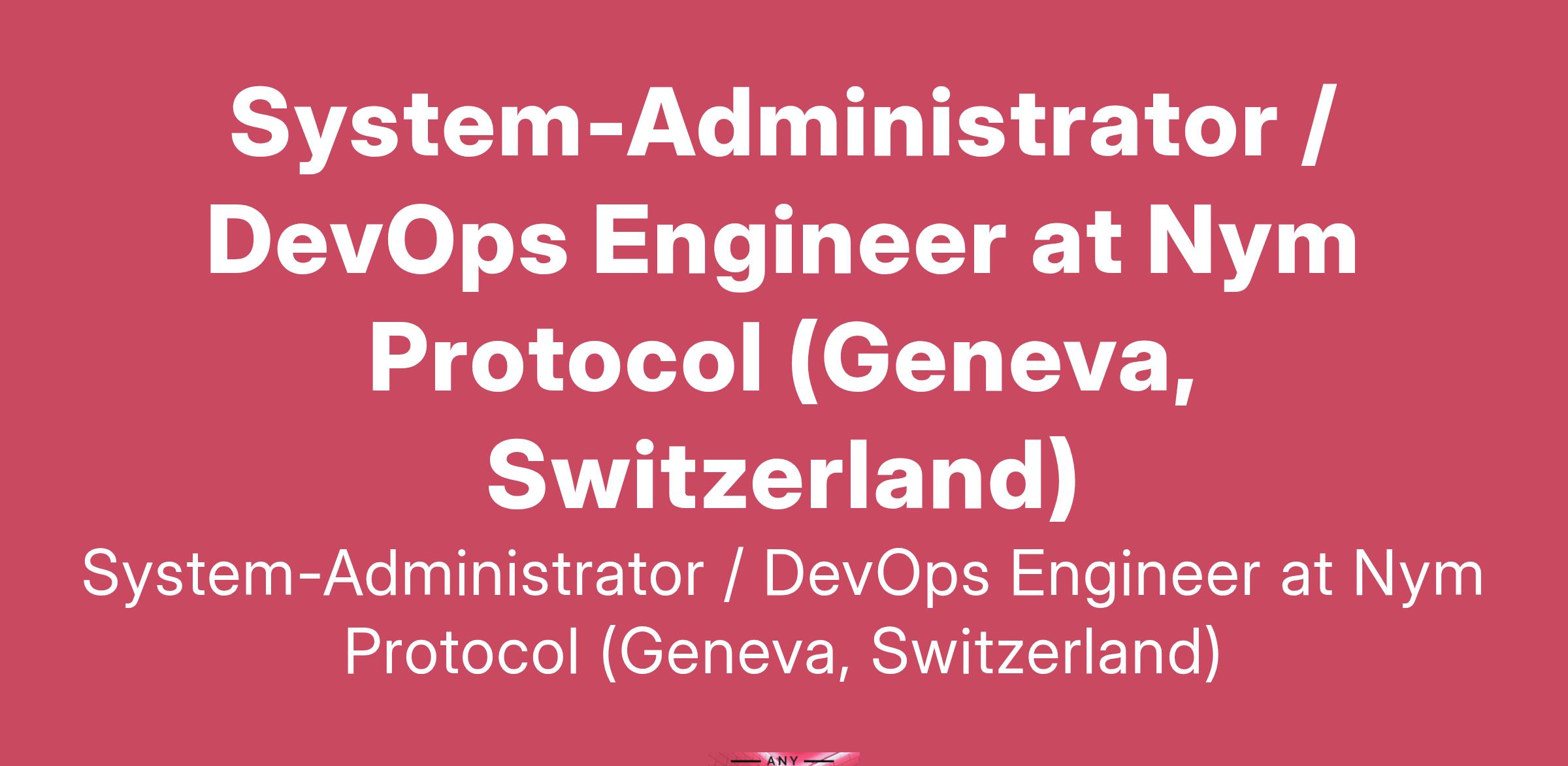 System-Administrator / DevOps Engineer at Nym Protocol (Geneva, Switzerland)