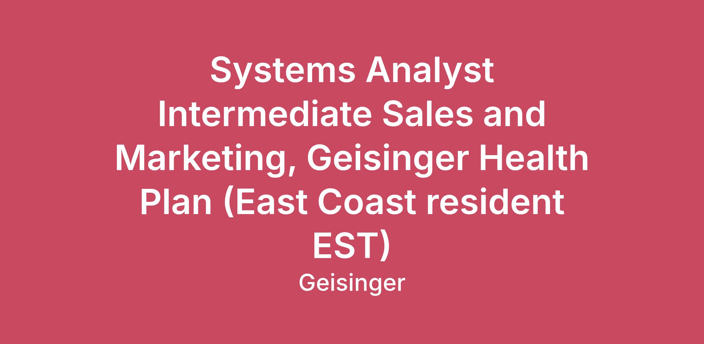 Location:Work from home (Pennsylvania)Shift:Days (United States of America)Scheduled Weekly Hours:40Worker Type:RegularExemption Status:YesJob Summary:Job Profile SummaryProvides application support to the Commercial Sales and Medicare division including the Call Center staff. Provides reporting and data analysis, as appropriate, in order to support Commercial and Medicare Sales in addition to Sales and Marketing Management. Trains sales staff on specific applications, assists with the development and implementation of database enhancements and facilitate the integrity of appropriate databases.Job Duties:Assists with conceptual and logical database design based on functional areas and business rules.Acquires, maintains and articulates a thorough understanding of the business' functional process and data requirements.Serves as the initial point of contact for the Commercial and Medicare Sales end user community by providing first-level support for assigned applications.Works with IT and database administrative staff and application developers to ensure application meets stated functional requirements.Writes SQL to accommodate ad hoc all relevant data requests.Provides User and IT liaison service to determine new requirements and to resolve difficulties over data access or performance.Maintains data including existing data and replenishment of data, de-dups.data, manages purchased data lists, routinely audits data for accuracy.Works in conjunction with all appropriate internal departments specific to data retrieval, analysis and reporting, e.g. Actuarial Support and QI.Works with Commercial and Medicare Sales and Sales and Marketing Management in the development of reports that assist in identifying sales opportunities that will produce net income for the health plan.Develops and manages Sales training content, process maps and Sales maps used in the Onyx Help Menu.Creates mailing lists for all direct mail campaigns including prospective commercial group by renewal effective date and Gold enrollment for newly eligible Medicare beneficiaries.Creates and maintains the codes necessary to track sales and marketing data.Works cooperatively with other team members to assure that the RFP fields reported upon and summarization thereof in all reports are created accurately and in a timely manner.Assists other team members in assuring that a draft lay-out for preliminary communication on all requested RFP reports is communicated to and agreed upon by the requestor and customer in the time frame specified on the RFP request form.Responsible for facilitating completion of formal sales proposals as initiated by national employee benefit consulting firms.Work is typically performed in an office environment. Accountable for satisfying all job specific obligations and complying with all organization policies and procedures. The specific statements in this profile are not intended to be all-inclusive. They represent typical elements considered necessary to successfully perform the job.Position Details:Education:High School Diploma or Equivalent (GED)- (Required)Experience:Minimum of 3 years-Information Technology (Required), Minimum of 3 years-Healthcare (Preferred)Certification(s) and License(s):Skills:Computer Literacy, Critical Thinking, Organizing, Teamwork, Working IndependentlyOUR PURPOSE & VALUES: Everything we do is about caring for our patients, our members, our students, our Geisinger family and our communities. KINDNESS: We strive to treat everyone as we would hope to be treated ourselves. EXCELLENCE: We treasure colleagues who humbly strive for excellence. LEARNING: We share our knowledge with the best and brightest to better prepare the caregivers for tomorrow. INNOVATION: We constantly seek new and better ways to care for our patients, our members, our community, and the nation.SAFETY: We provide a safe environment for our patients and members and the Geisinger family. We offer healthcare benefits for full time and part time positions from day one, including vision, dental and domestic partners. Perhaps just as important, we encourage an atmosphere of collaboration, cooperation and collegiality.We know that a diverse workforce with unique experiences and backgrounds makes our team stronger. Our patients, members and community come from a wide variety of backgrounds, and it takes a diverse workforce to make better health easier for all. We are proud to be an affirmative action, equal opportunity employer and all qualified applicants will receive consideration for employment regardless to race, color, religion, sex, sexual orientation, gender identity, national origin, disability or status as a protected veteran.