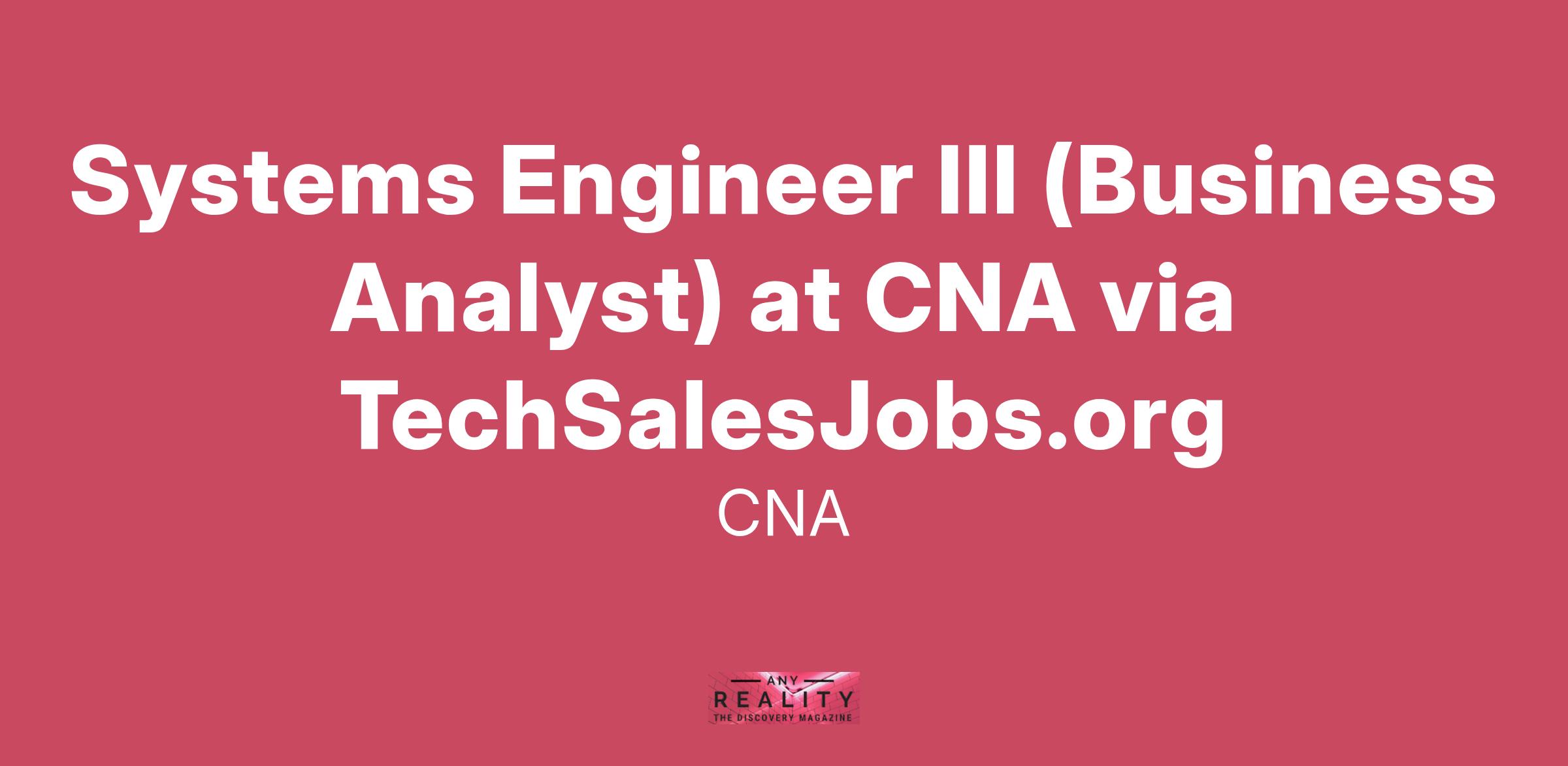 Systems Engineer III (Business Analyst) at CNA via TechSalesJobs.org