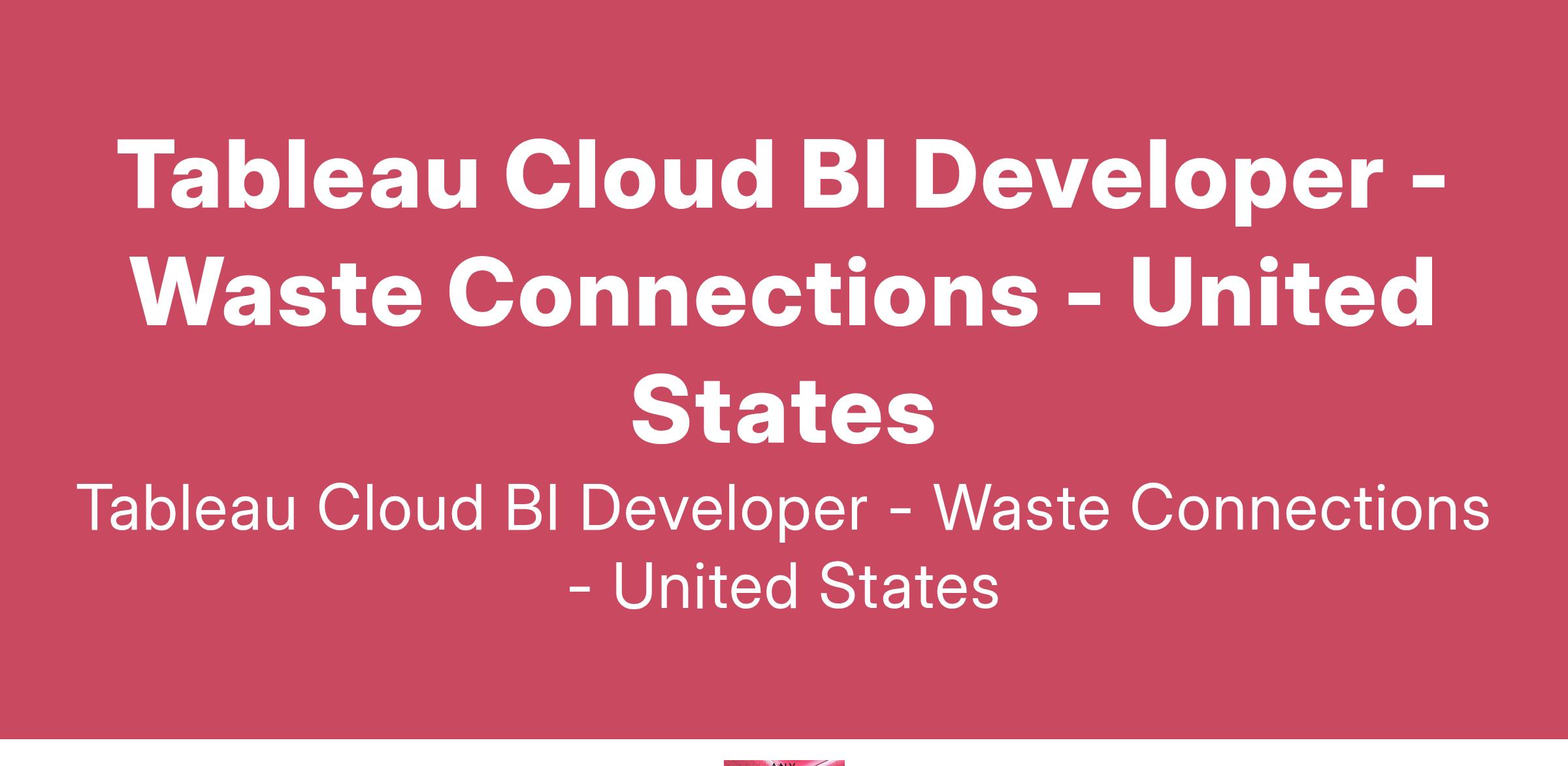 Waste Connections is currently seeking a talented Tableau Cloud BI Developer to assist in the management, development and support of our BI solutions and Tableau environment. This candidate will communicate and recommend complex business processes and procedures and relevant information to resolve internal customer issues.