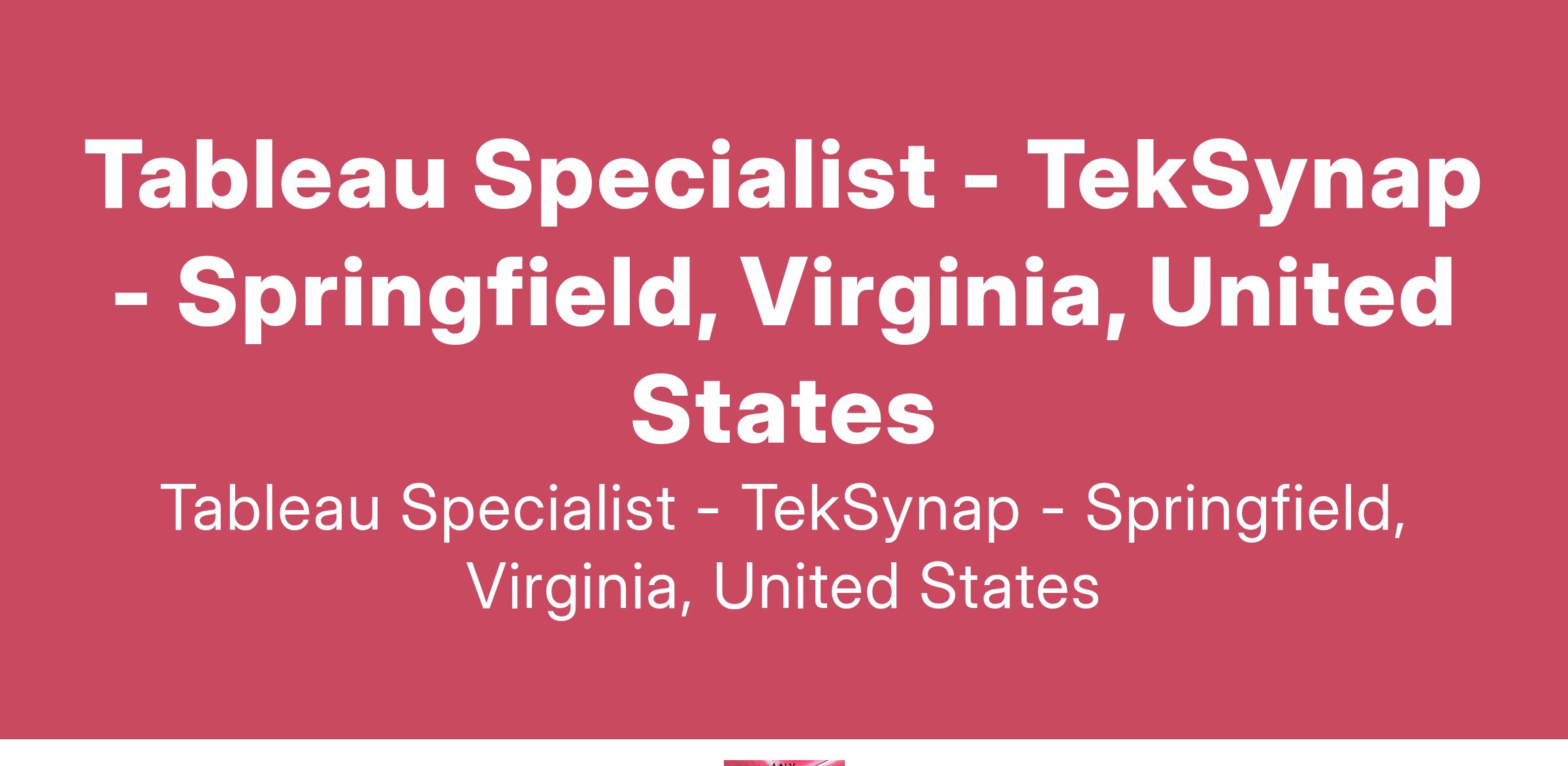 We are seeking a Tableau Specialist to join our team supporting our NGA customer in Springfield, VA.