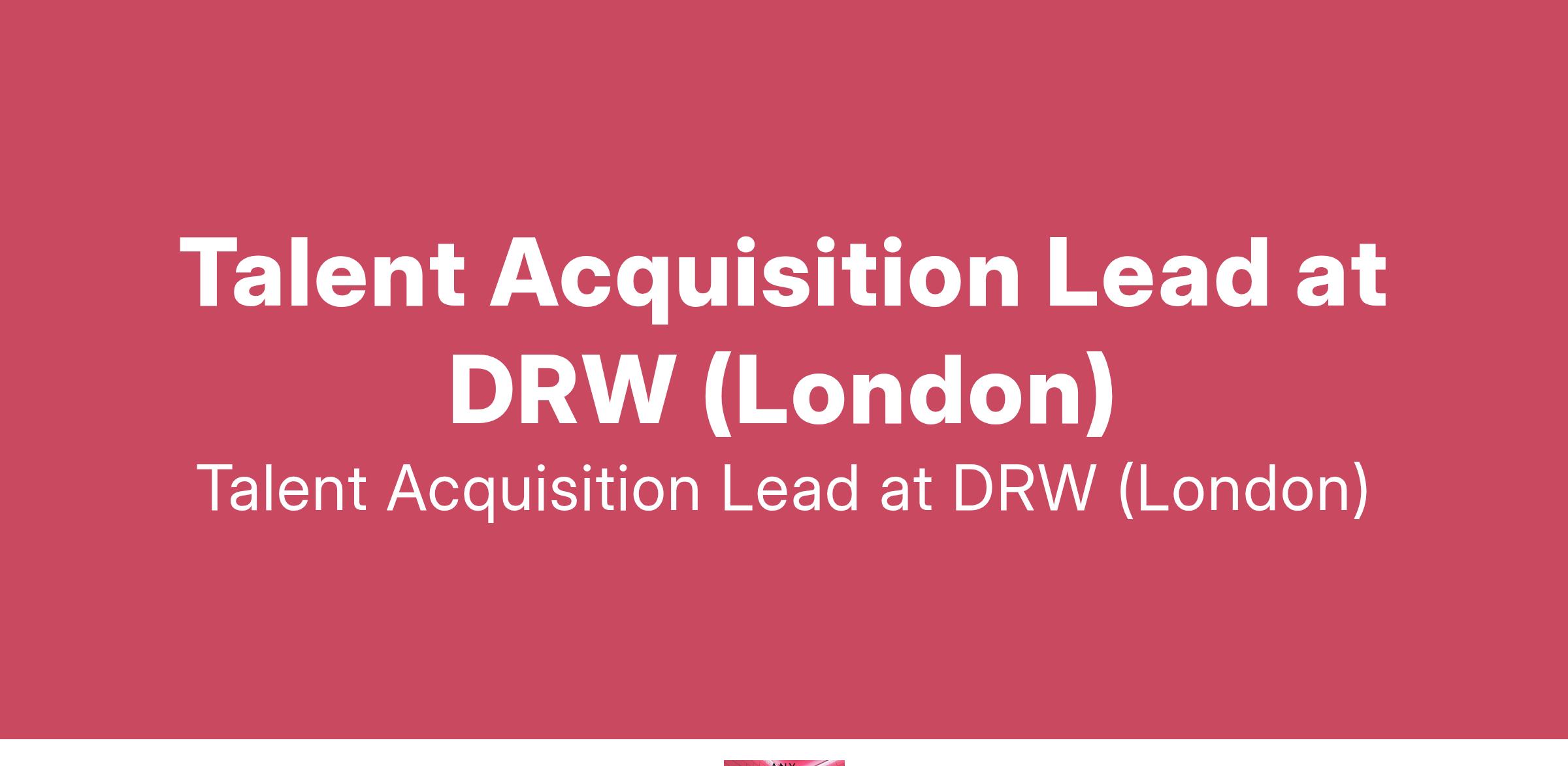 Talent Acquisition Lead at DRW (London)