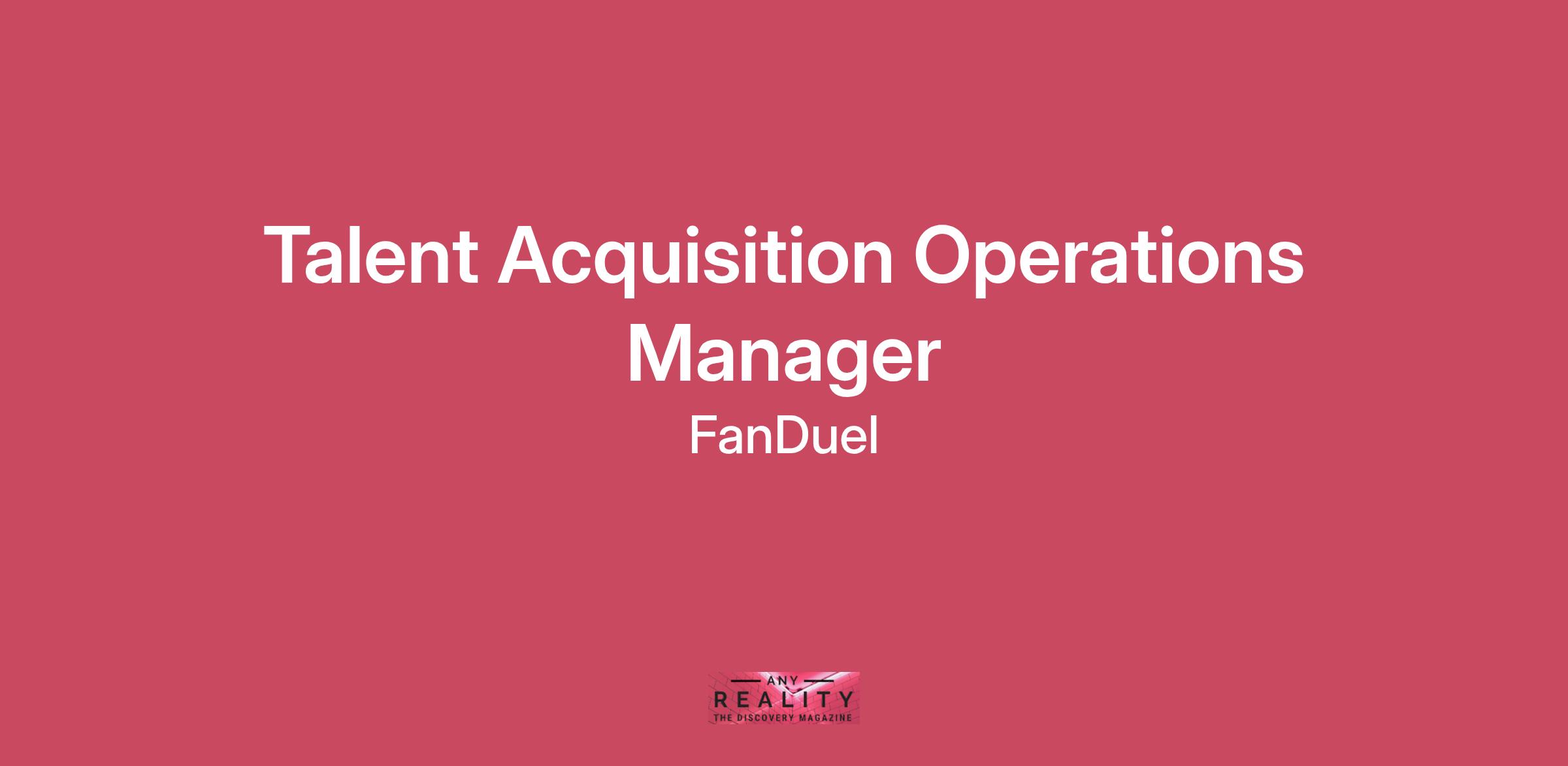 FanDuel is looking for a Talent Acquisition Operations Manager to join our People Team. In this role, you’ll partner closely with the Director of Talent Acquisition Operations & Programs to drive process improvements, manage strategic recruiting initiatives, and help scale systems that enhance candidate experience and team efficiency.