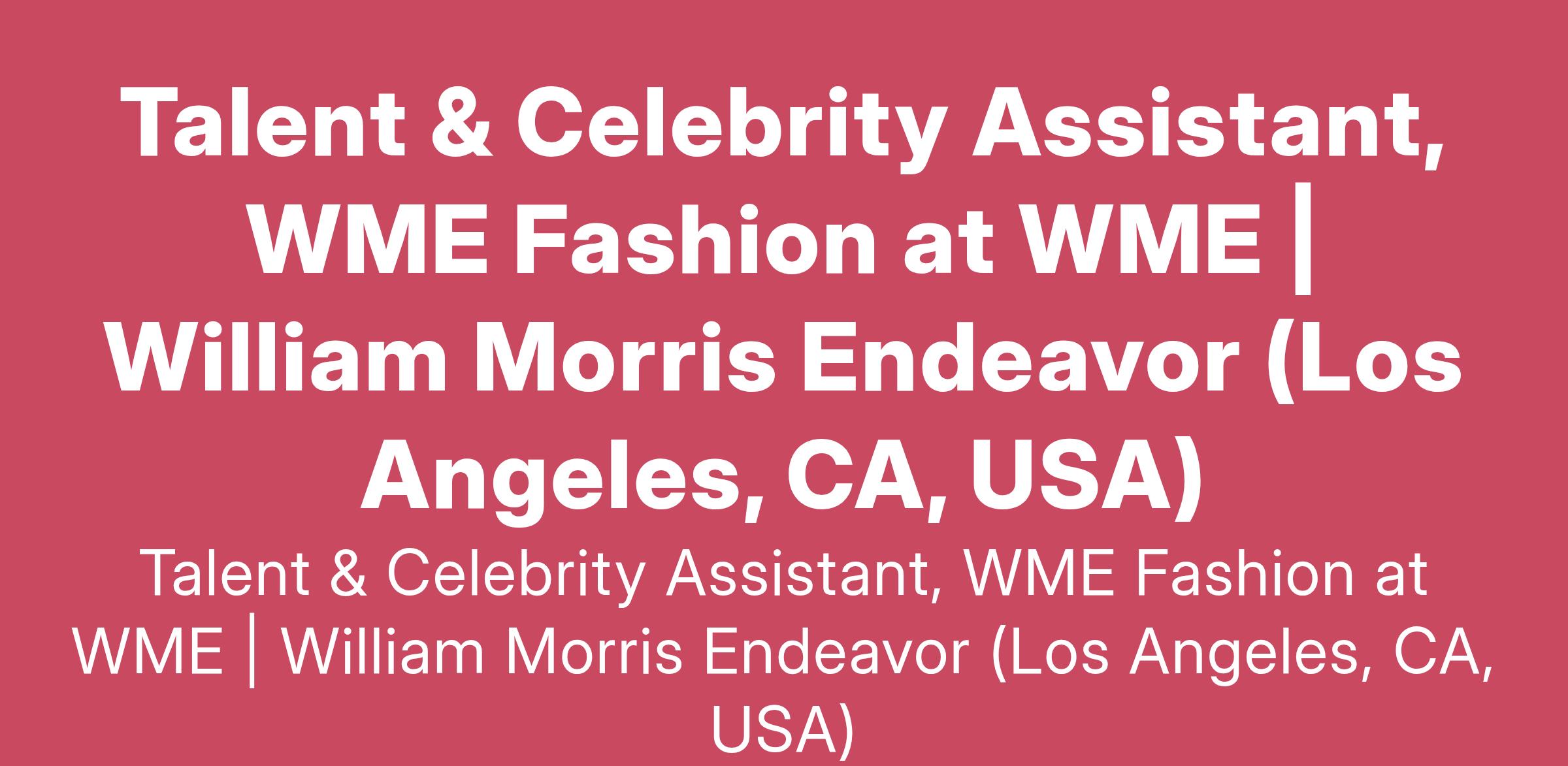 Talent & Celebrity Assistant, WME Fashion at WME | William Morris Endeavor (Los Angeles, CA, USA)