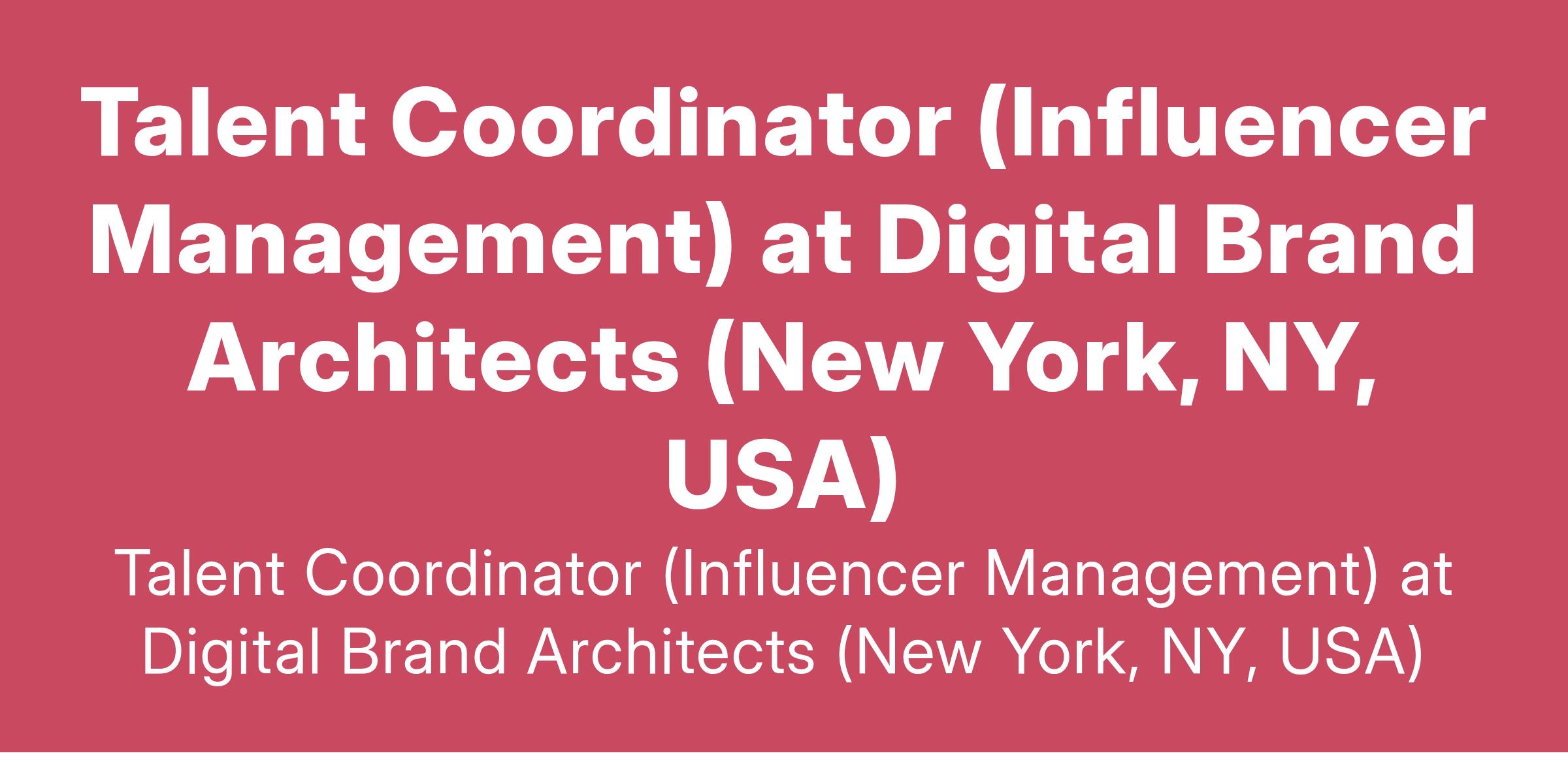 Talent Coordinator (Influencer Management) at Digital Brand Architects (New York, NY, USA)