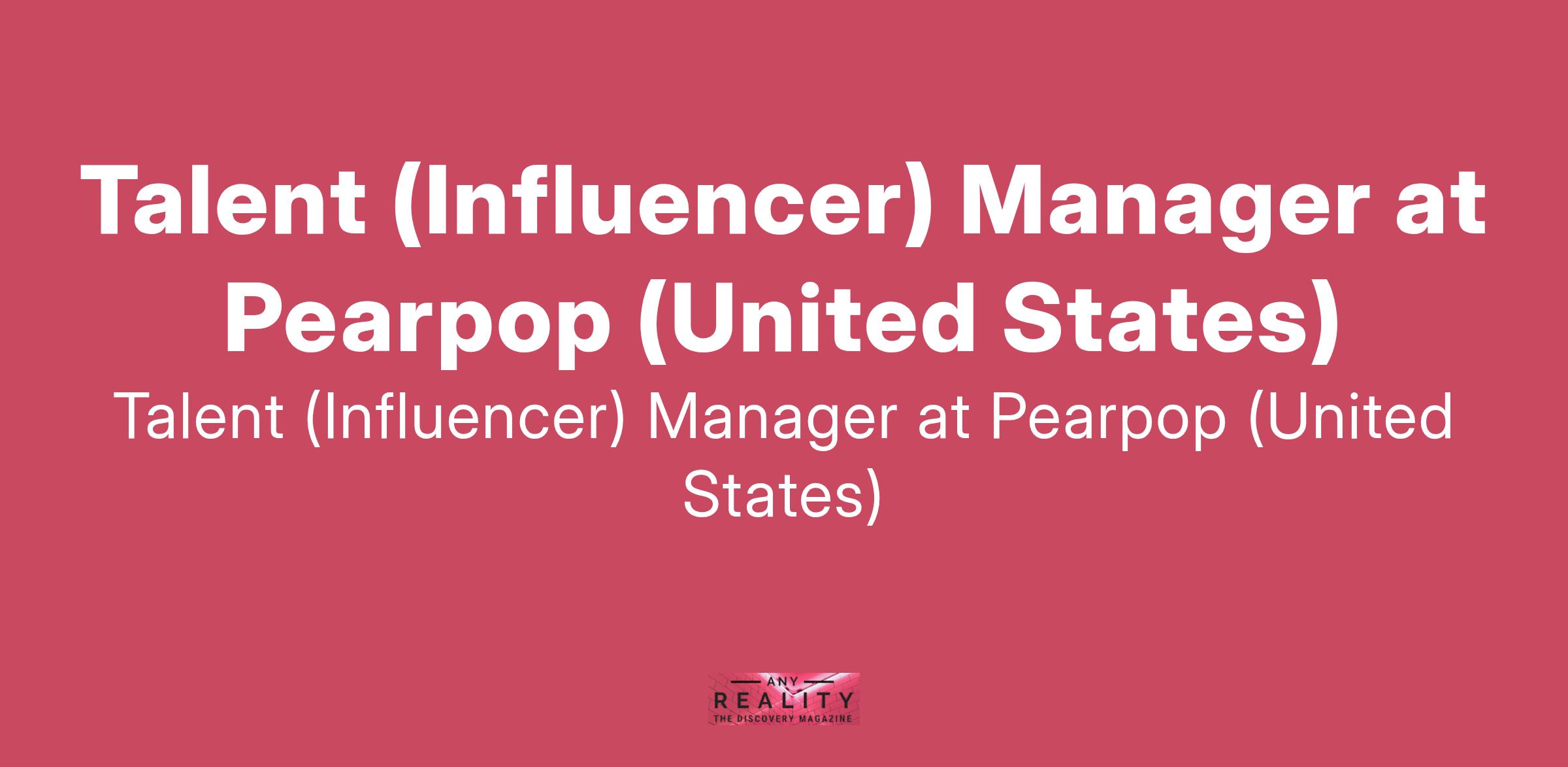 Talent (Influencer) Manager at Pearpop (United States)