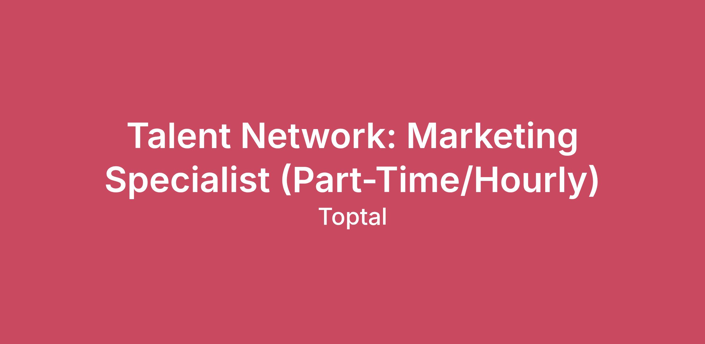 Talent Network: Marketing Specialist (Part-Time/Hourly)