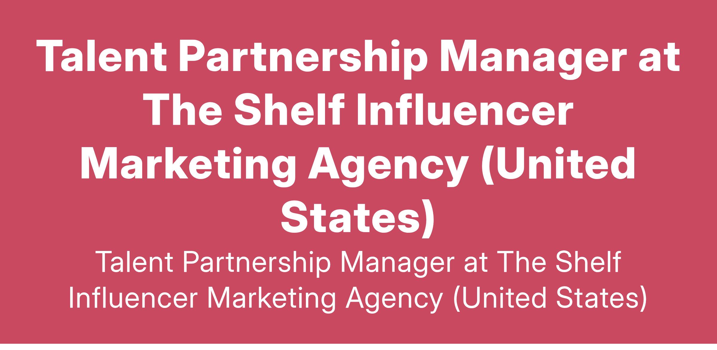 Talent Partnership Manager at The Shelf Influencer Marketing Agency (United States)