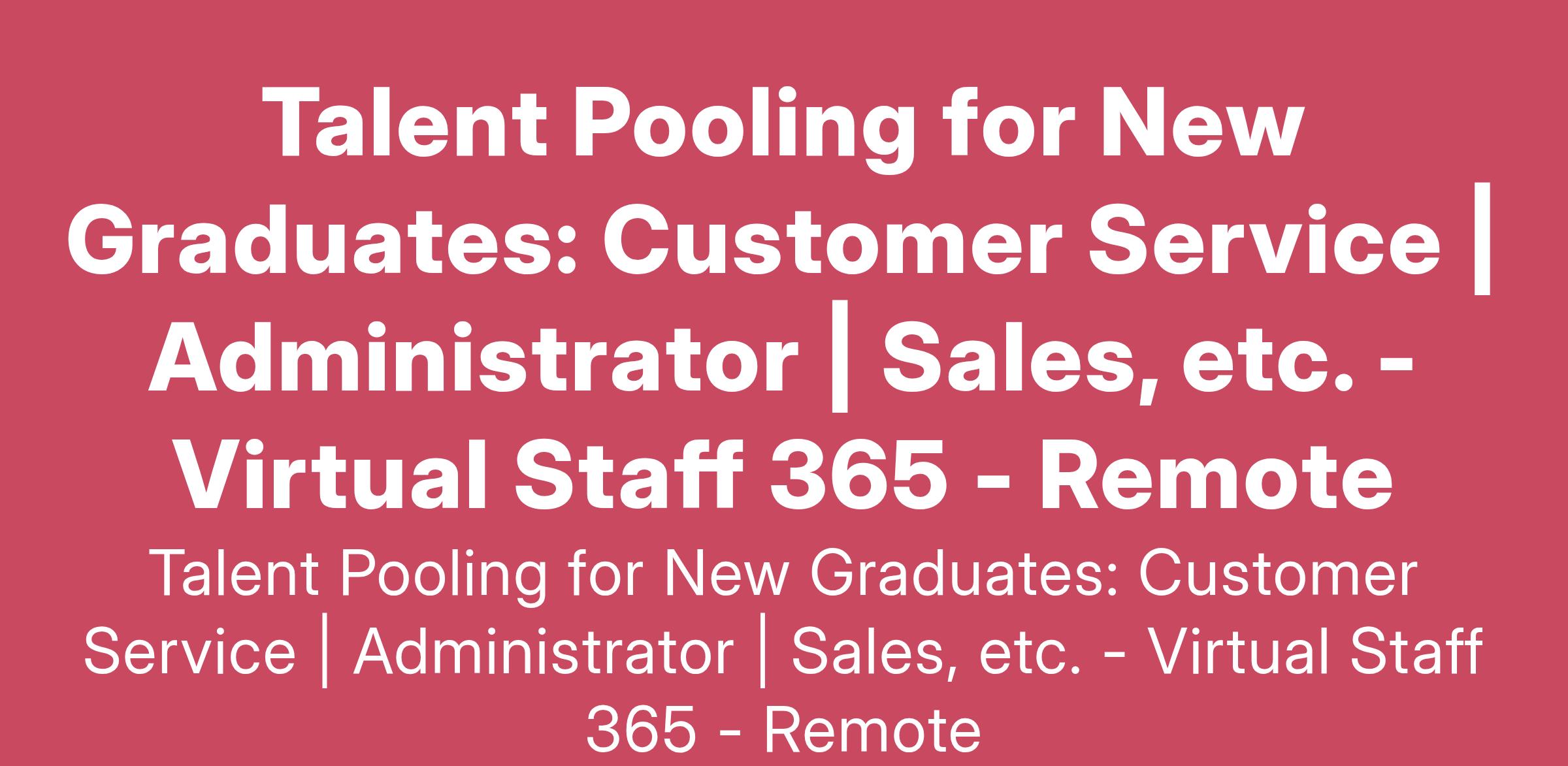 We’re building a talent pool of recent graduates ready to make an impact in various fields. Join our network for dayshift work-from-home roles that offer professional growth, development, and a chance to work with diverse clients!
