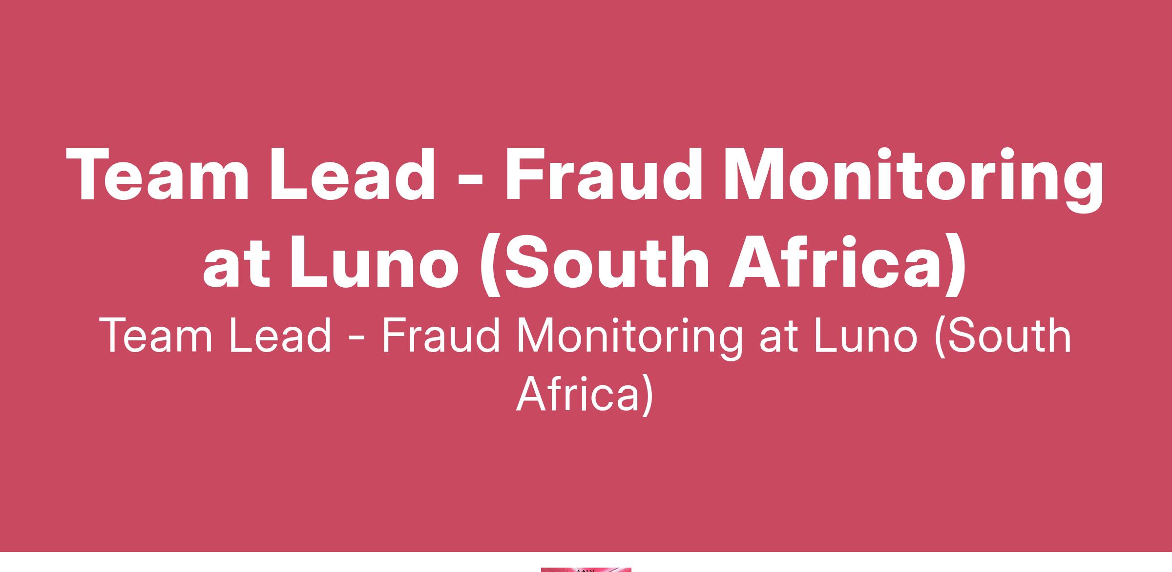 Team Lead - Fraud Monitoring at Luno (South Africa)
