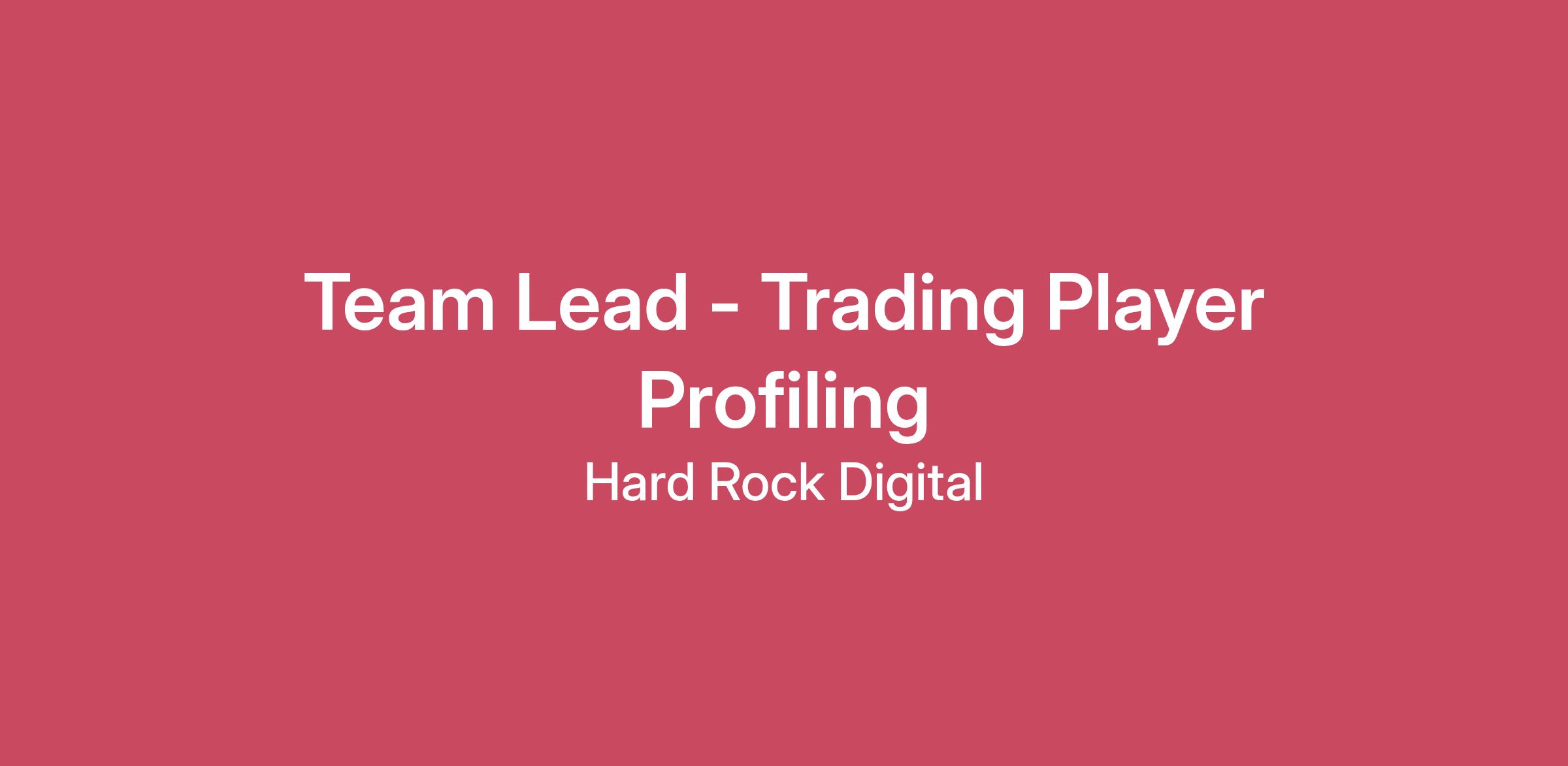 We are seeking a highly skilled and experienced Team Leader in Player Profiling to join our team.