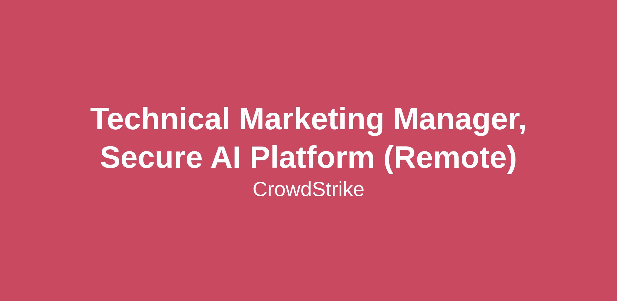 As a global leader in cybersecurity, CrowdStrike protects the people, processes and technologies that drive modern organizations. Since 2011, our mission hasn’t changed — we’re here to stop breaches, and we’ve redefined modern security with the world’s most advanced AI-native platform. Our customers span all industries, and they count on CrowdStrike to keep their businesses running, their communities safe and their lives moving forward. We’re also a mission-driven company. We cultivate a culture that gives every CrowdStriker both the flexibility and autonomy to own their careers. We’re always looking to add talented CrowdStrikers to the team who have limitless passion, a relentless focus on innovation and a fanatical commitment to our customers, our community and each other. Ready to join a mission that matters? The future of cybersecurity starts with you.About the Role:The Technical Marketing Manager for Secure AI Platform will combine a deep technical expertise in AI security with hands-on marketing execution to demonstrate how CrowdStrike protects the complete AI lifecycle and attack surface. This role reports to the Head of AI Security Product Marketing and serves as a critical technical voice for the product marketing team, creating compelling demonstrations, technical content, and enablement assets that accelerate customer adoption and showcase CrowdStrike's differentiation in securing AI. You will work across multiple product and services teams to represent the CrowdStrike Falcon platform's comprehensive capabilities spanning endpoints, applications, SaaS, identities, cloud workloads, and the new prompt and agent interaction layer. Your technical expertise will bridge product capabilities with market narratives, ensuring that CrowdStrike's messaging is both technically accurate and competitively compelling.As a Technical Marketing Manager, you will create demonstrations, develop technical workshops, and produce practitioner-level content that helps customers understand how to secure AI systems against threats such as shadow AI, prompt injection, data poisoning, model theft, and agentic tool chain attacks. This is an individual contributor, hands-on role requiring technical depth, strong attention to detail and a burning desire to stay current on AI technologies and security threats.What You'll Do:Develop and deliver compelling demonstrations of CrowdStrike’s capabilities to secure AI aligned to GTM motions, use cases, and threats across the AI lifecycle and attack surfaceBuild workshops, technical whitepapers, and best practice guides that accelerate adoption and highlight CrowdStrike's differentiation in securing AI apps, models, and infrastructureCreate technical thought leadership content including blogs, webinars, technical articles, and conference presentations that showcase CrowdStrike's innovationSupport platform positioning and messaging by providing technical expertise on AI security threats, attack vectors, and platform capabilitiesPlay a key role in launch planning and execution, ensuring technical readiness, demo availability, and field enablement for new platform AI security capabilitiesCollaborate with Sales Engineering and Enablement to develop technical sales plays, training materials that sharpen differentiation in AI security evaluationsRepresent CrowdStrike at events as a technical subject matter expert on securing AI, demonstrating platform capabilities and engaging with technical audiencesWhat You'll Need:5+ years of cybersecurity or AI/ML experience in roles in technical marketing, sales engineering, solutions architecture, or related domainsBachelor's degree in computer science, cybersecurity, engineering, or related technical fields, or equivalent practical experienceProven experience creating and delivering complex technical demos, workshops, and enablement content for security solutions and audiences Excellent communication and presentation skills with the ability to clearly articulate technical value to different audiences from AI developers to CISOsStrong attention to detail and ability to manage multiple technical projects simultaneously across different product teamsIdeal candidates will have a strong understanding of AI technical concepts including LLM inference pipelines, Model Context Protocol (MCP), RAG architectures, vector databases, and agentic architecturesIdeal candidates will have domain knowledge on AI security threats such as prompt injection, jailbreaking, data poisoning, model theft, and AI supply chain securityAs a Technical Marketing Manager for Secure AI Platform, you will demonstrate how customers can confidently develop, deploy, and adopt AI while protecting against sophisticated threats, advancing CrowdStrike's mission to stop breaches in the AI era. #LI-REMOTE#LI-MJ1Benefits of Working at CrowdStrike:Market leader in compensation and equity awardsComprehensive physical and mental wellness programs Competitive vacation and holidays for recharge Paid parental and adoption leavesProfessional development opportunities for all employees regardless of level or roleEmployee Networks, geographic neighborhood groups, and volunteer opportunities to build connectionsVibrant office culture with world class amenitiesGreat Place to Work Certified™ across the globeCrowdStrike is proud to be an equal opportunity employer. We are committed to fostering a culture of belonging where everyone is valued for who they are and empowered to succeed. We support veterans and individuals with disabilities through our affirmative action program.CrowdStrike is committed to providing equal employment opportunity for all employees and applicants for employment. The Company does not discriminate in employment opportunities or practices on the basis of race, color, creed, ethnicity, religion, sex (including pregnancy or pregnancy-related medical conditions), sexual orientation, gender identity, marital or family status, veteran status, age, natio