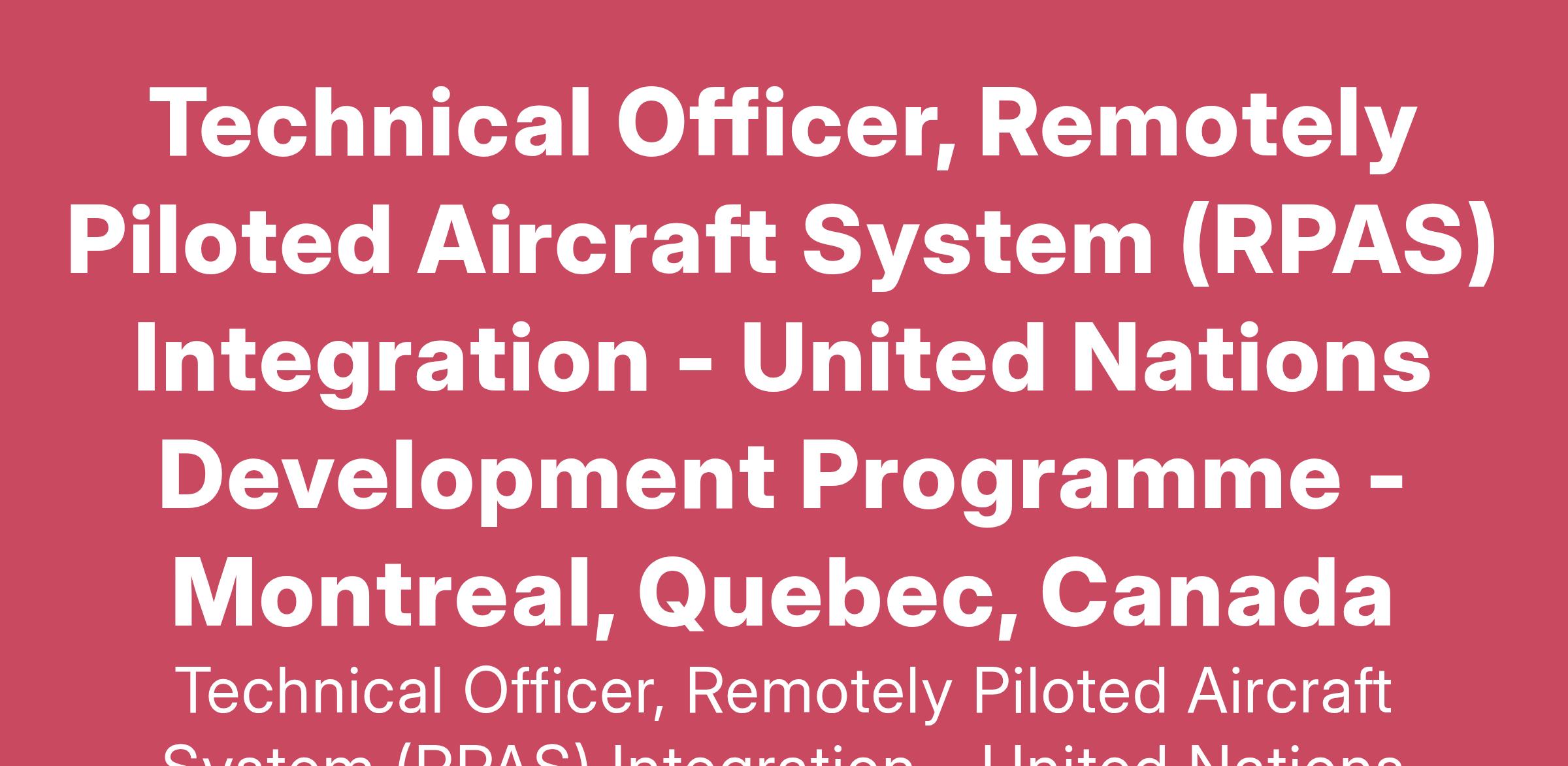 The Technical Officer, Remotely Piloted Aircraft System (RPAS) Integration reports directly to the Chief, RPAS section, and provides technical advices and services in relation to the integration of Standards and Recommended Practices for Annex 1 – Personnel Licensing, Annex 2 — Rules of the Air, Annex 3 – Meteorology, Annex 6 – Operation of Aircraft, Annex 7 — Aircraft Nationality and Registration Marks, Annex 8 – Airworthiness of Aircraft, Annex 10 — Aeronautical Telecommunications, Annex 11 — Air Traffic Services, Annex 14 — Aerodromes, as well as guidance material for the Manual on Remotely Piloted Aircraft Systems (RPAS) (Doc 10019), the forthcoming Manual on C2 Links for RPAS, the Detect and avoid (DAA) Manual, the online Unmanned Aircraft Systems (UAS) Toolkit and related ICAO documents. The incumbent supports the Secretary of the RPAS Panel, prepares briefing material and working papers. S/he carries out duties and responsibilities in support of related matters, as assigned to her/him by the Supervisor. The incumbent collaborates closely with other Technical Officers in the Air Navigation Bureau and other Bureaux, as well as with Regional Offices for all RPAS, UAS and AAM-related matters.