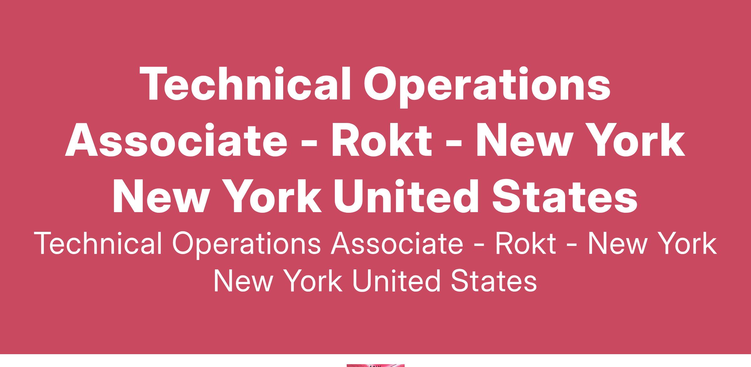 We are looking for a Technical Operations Associate