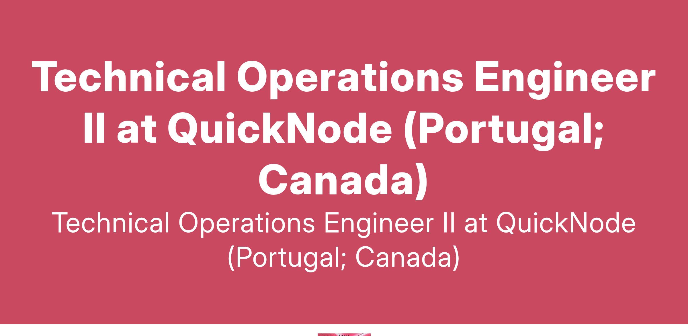 Technical Operations Engineer II at QuickNode (Portugal; Canada)