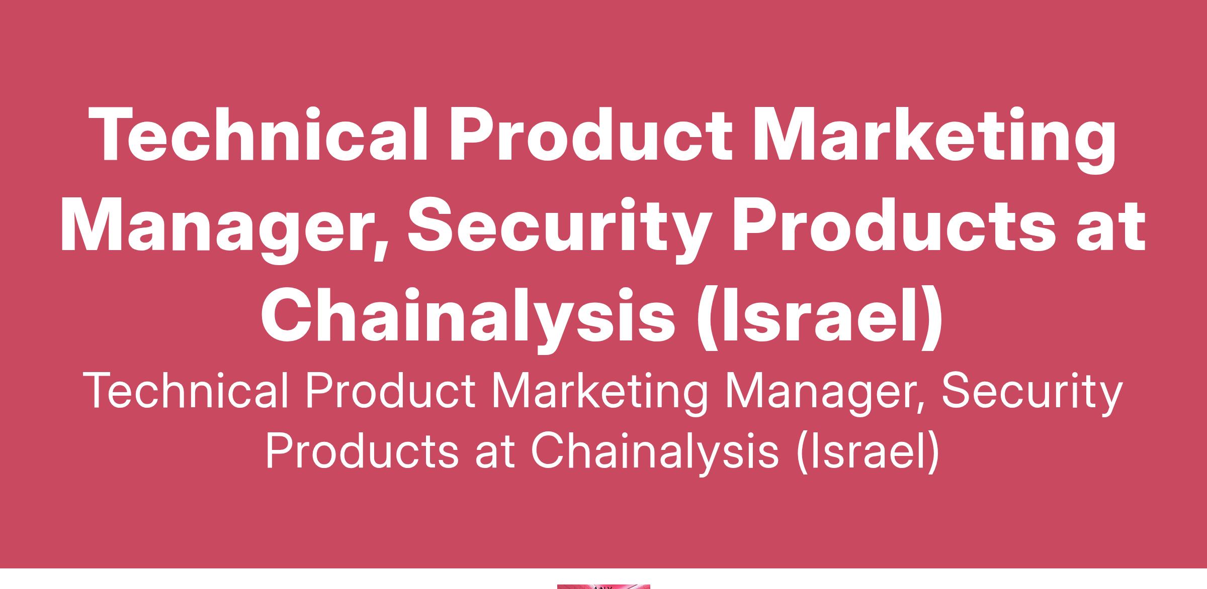 Technical Product Marketing Manager, Security Products at Chainalysis (Israel)
