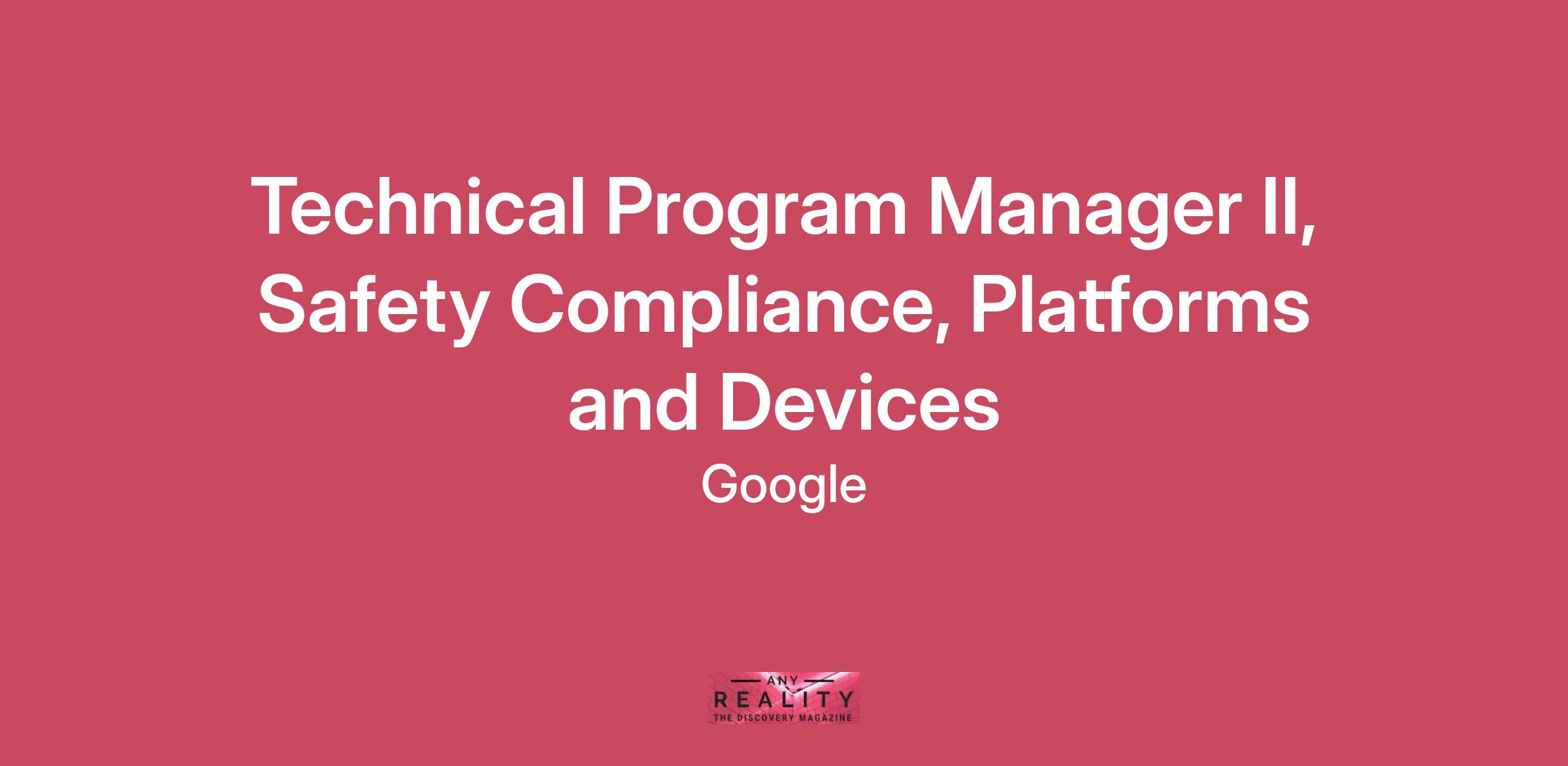 As the Safety Compliance Technical Program Manager, you will be responsible for ensuring that Google Consumer Hardware products meet all applicable hardware safety standards requirements, follow industry best practices, and are ready to succeed in the market. You will work with Product Counsels, Product Design Engineers, Electrical Engineers, Manufacturing Partners, Supply Chain and Operations to ensure Google Consumer Hardware products are in full compliance. In addition to supporting product development, you will also be able to help shape Google's best practices and processes certifying new products.