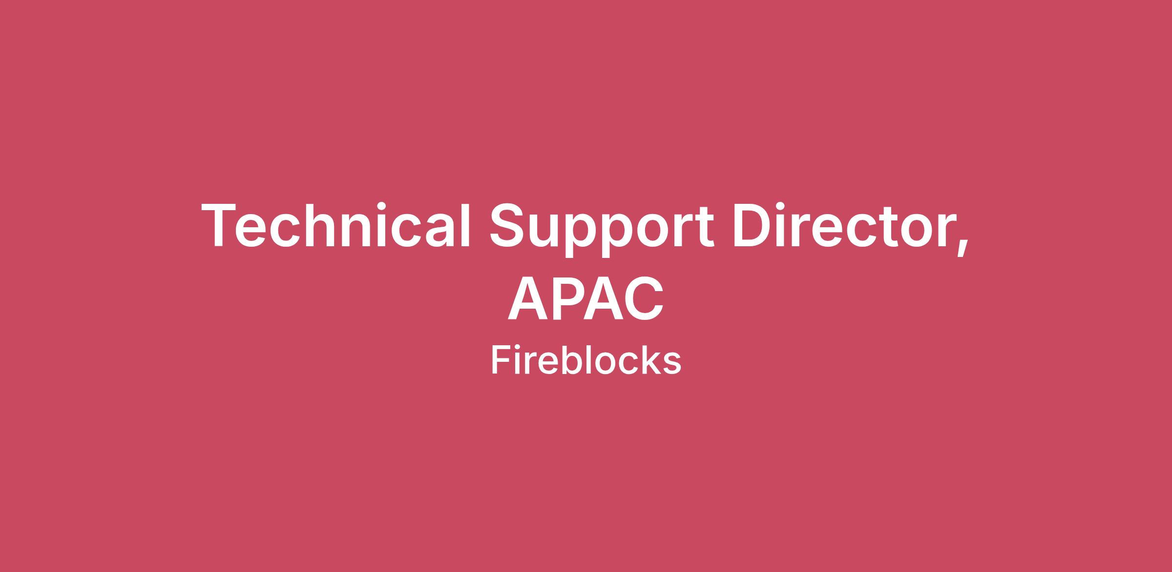 We are seeking a motivated and experienced Director of Technical Support to lead the APAC region. The ideal candidate will actively participate in providing top-notch support to our large enterprise clients and oversee our team of skilled engineers who specialize in solving complex problems related to various blockchains and Fireblocks Infrastructure. As the Director of Technical Support in APAC, you will be responsible for planning, building, recruiting, hiring, and engaging with our top customers in the region.
