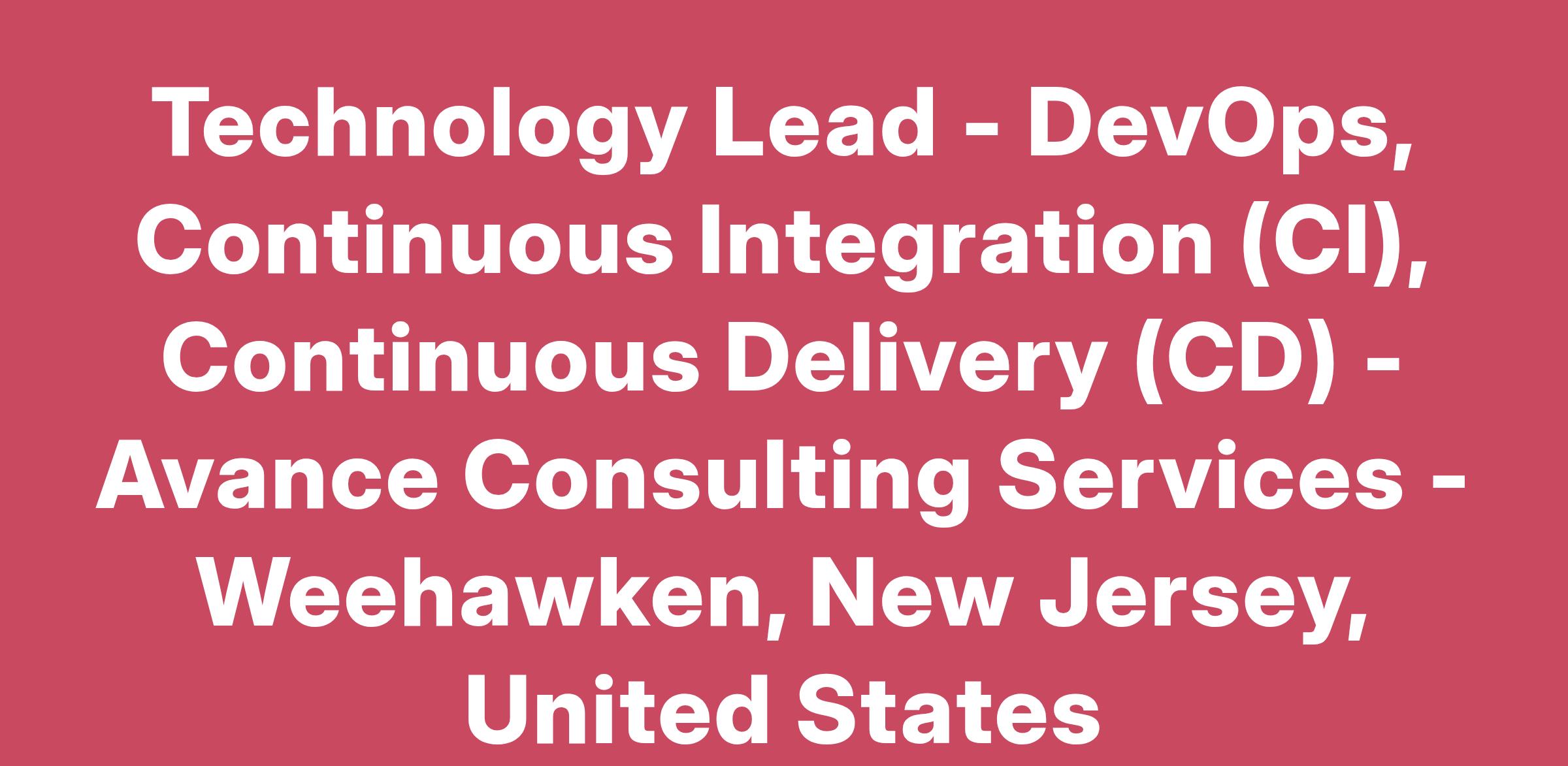 Role: Technology Lead - DevOps, Continuous Integration (CI), Continuous Delivery (CD), Tools Migration and consolidation