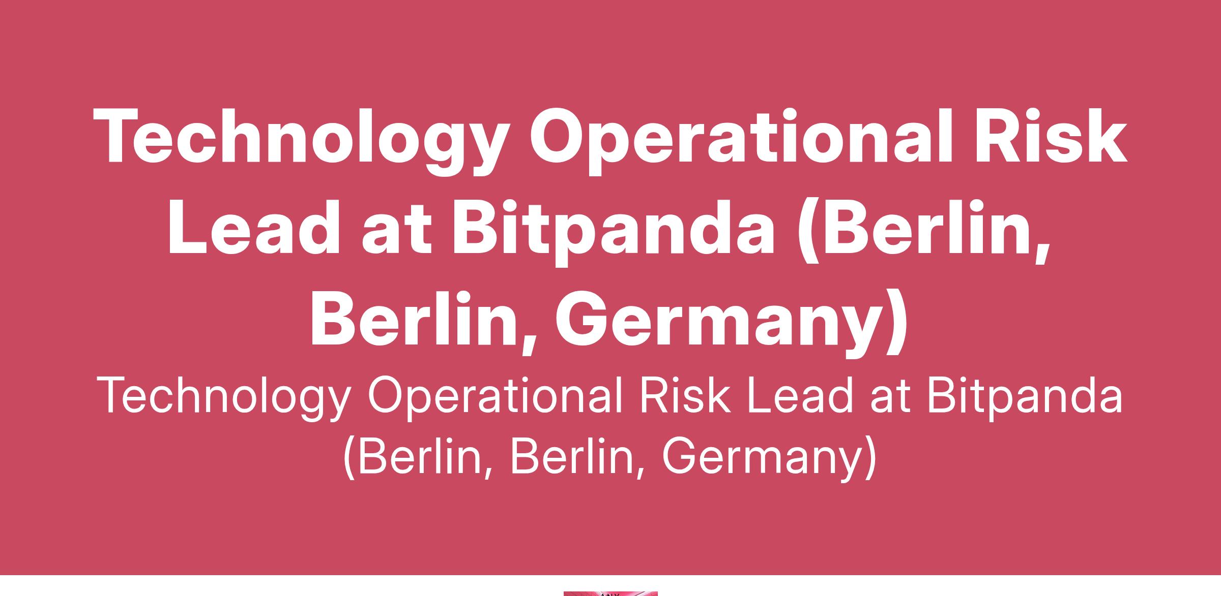 Technology Operational Risk Lead at Bitpanda (Berlin, Berlin, Germany)