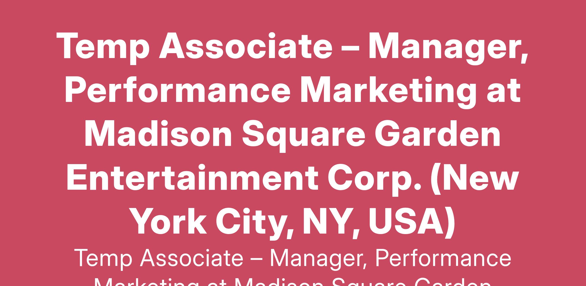 Temp Associate – Manager, Performance Marketing at Madison Square Garden Entertainment Corp. (New York City, NY, USA)