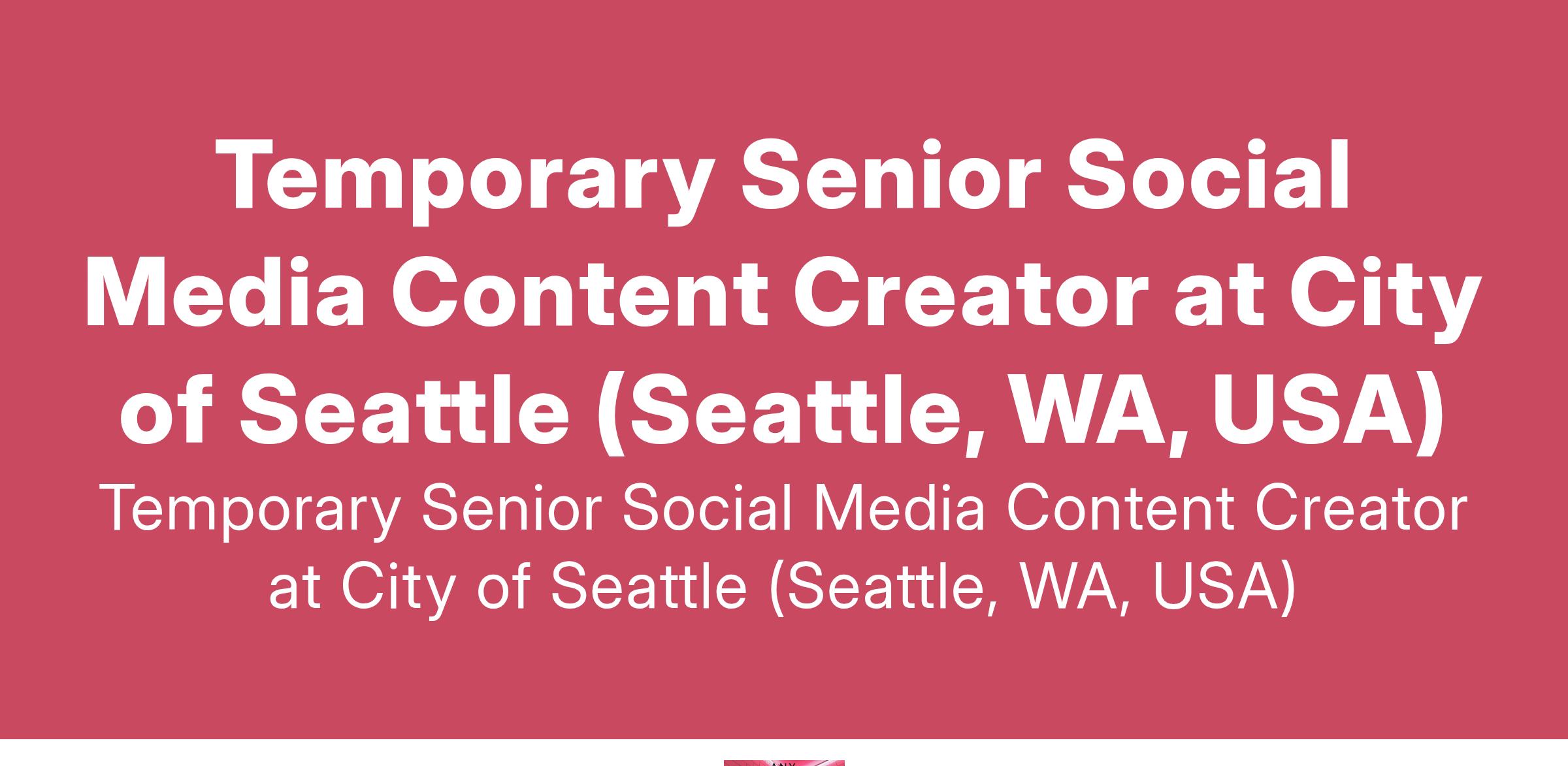 Temporary Senior Social Media Content Creator at City of Seattle (Seattle, WA, USA)