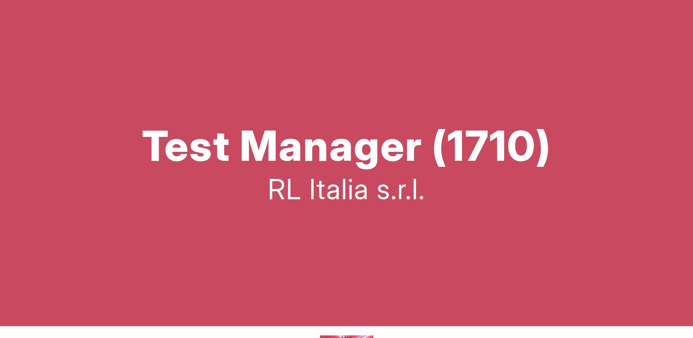 RL Italia s.r.l., azienda di Servizi IT con sede a Roma e Milano, operante su tutto il territorio nazionale, ricerca un/una Test Manager Sede: Milano.