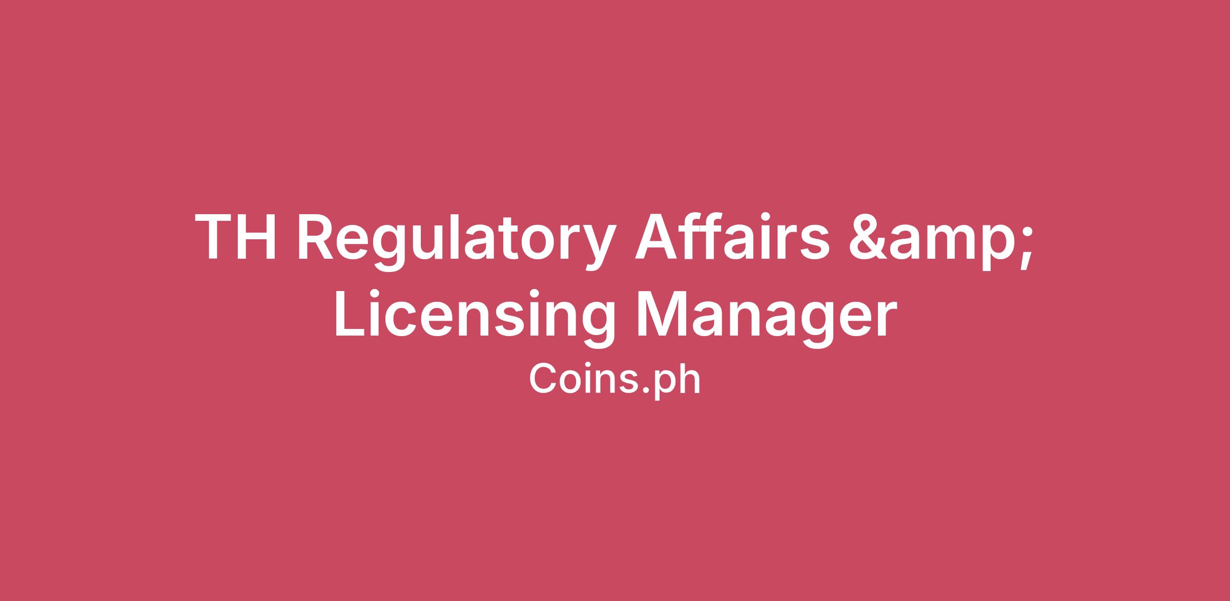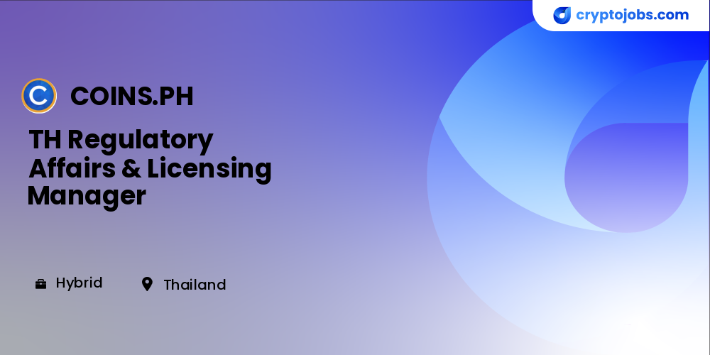 The Thailand Regulatory Affairs & Licensing Manager leads Coins’ regulatory strategy, licensing execution, and compliance alignment in Thailand. The role tracks regulatory developments, manages licensing processes, communicates with regulators, builds internal compliance frameworks, and ensures Coins’ products and operations comply with Thai SEC, BOT, AMLO, and other authorities.
