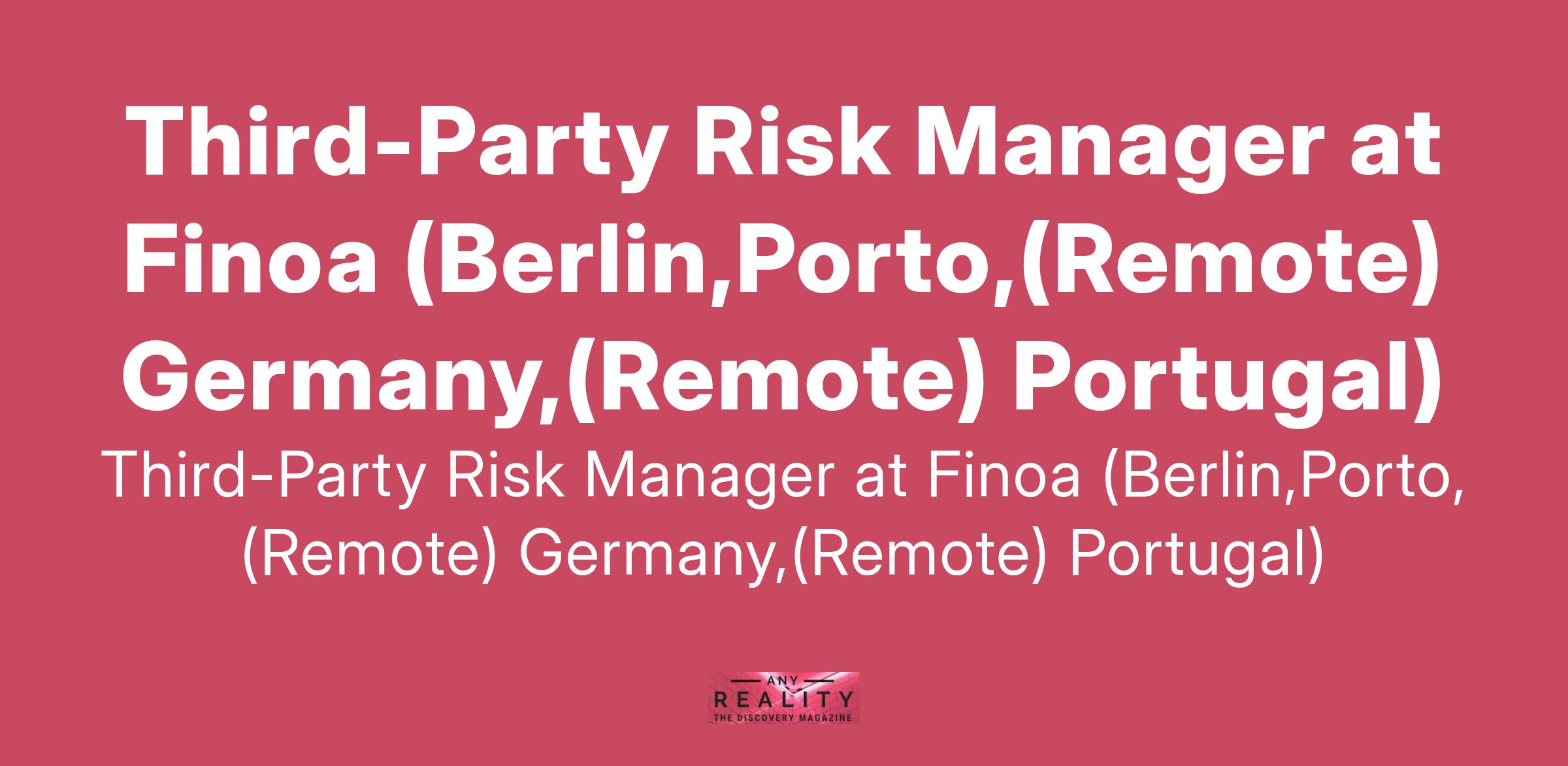Third-Party Risk Manager at Finoa (Berlin,Porto,(Remote) Germany,(Remote) Portugal)