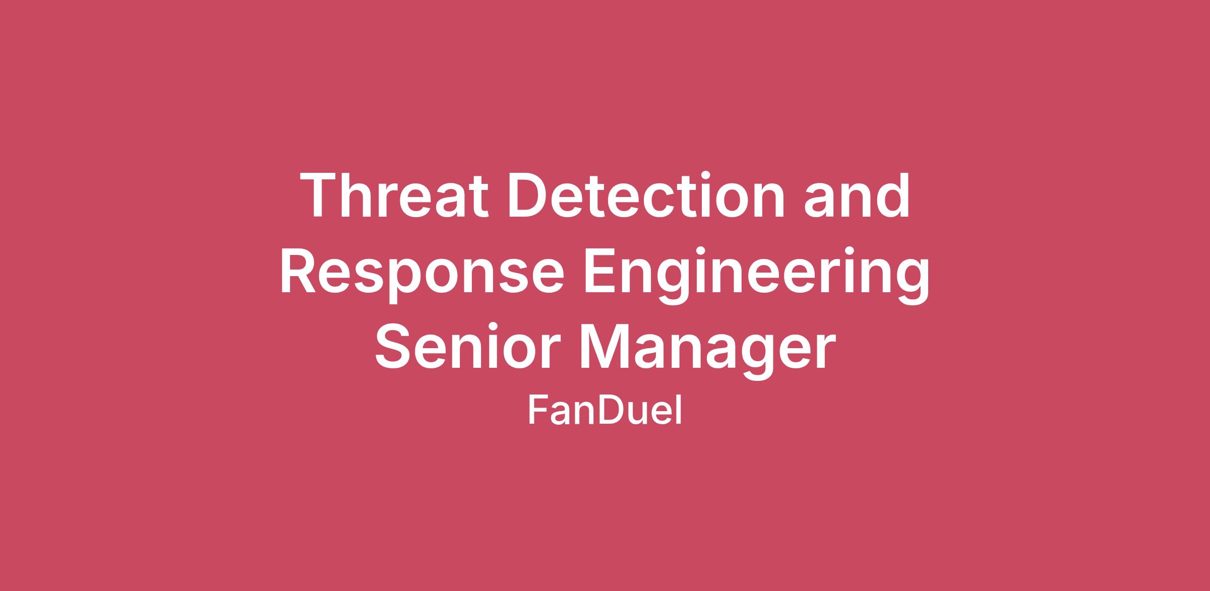 We are seeking a Senior Engineering Manager - Threat Detection and Response to lead and evolve our threat detection, threat intelligence, and response capabilities across our organization.