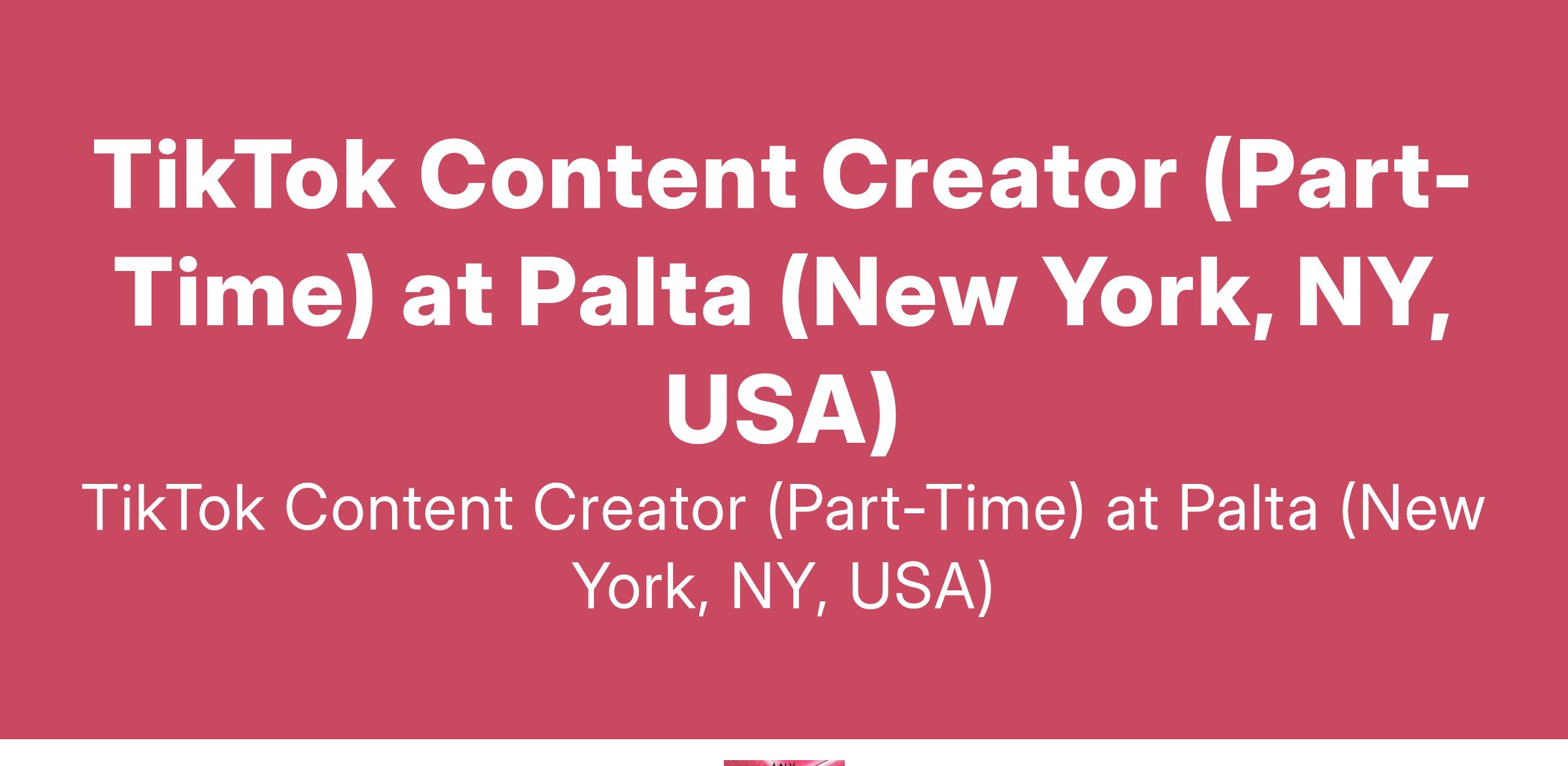 TikTok Content Creator (Part-Time) at Palta (New York, NY, USA)