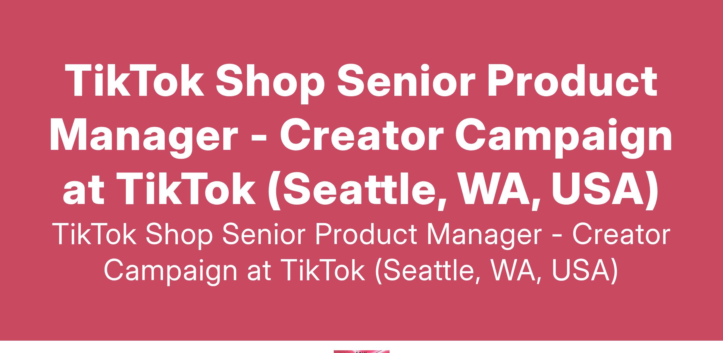 TikTok Shop Senior Product Manager - Creator Campaign at TikTok (Seattle, WA, USA)