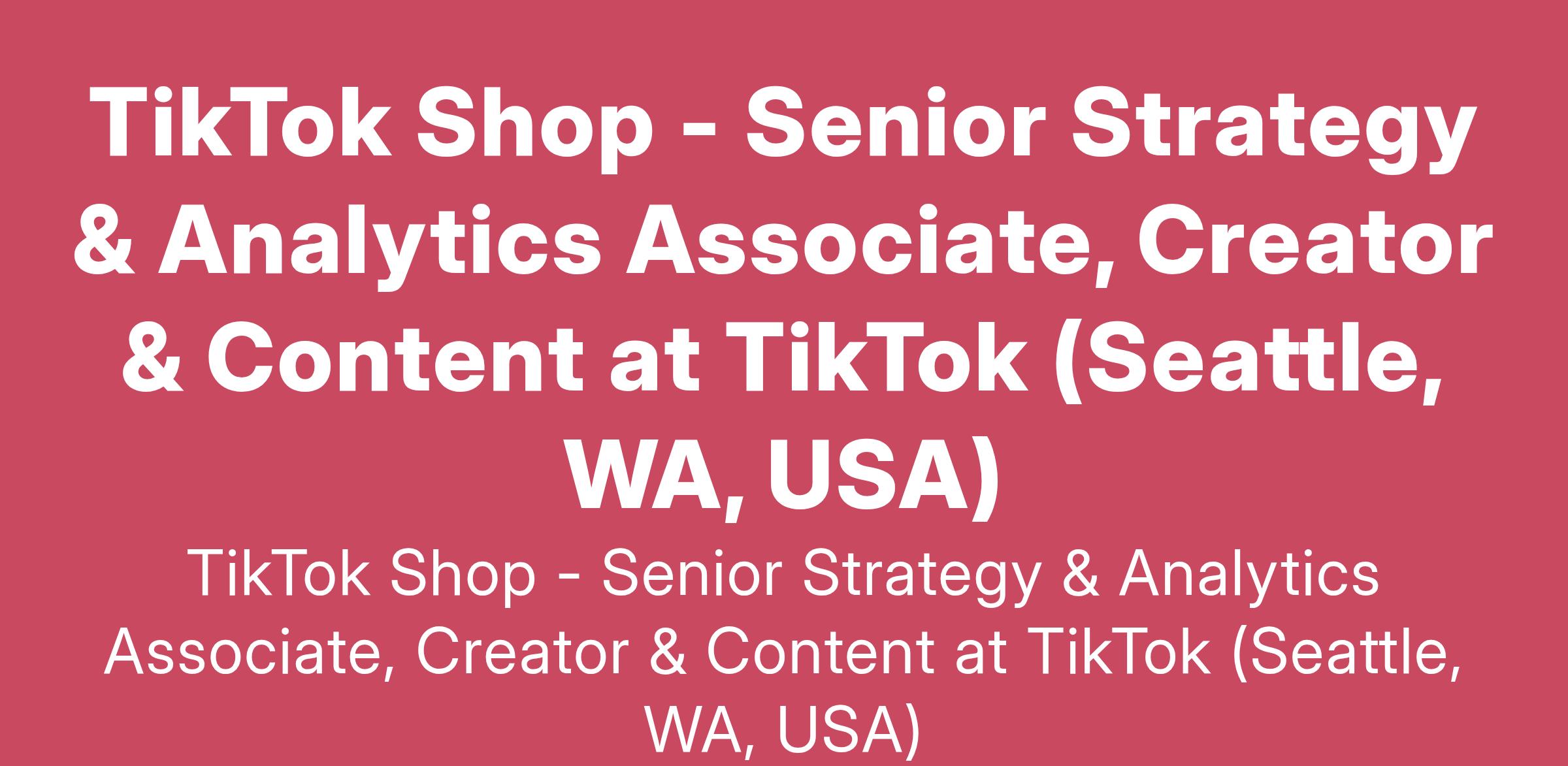 TikTok Shop - Senior Strategy & Analytics Associate, Creator & Content at TikTok (Seattle, WA, USA)