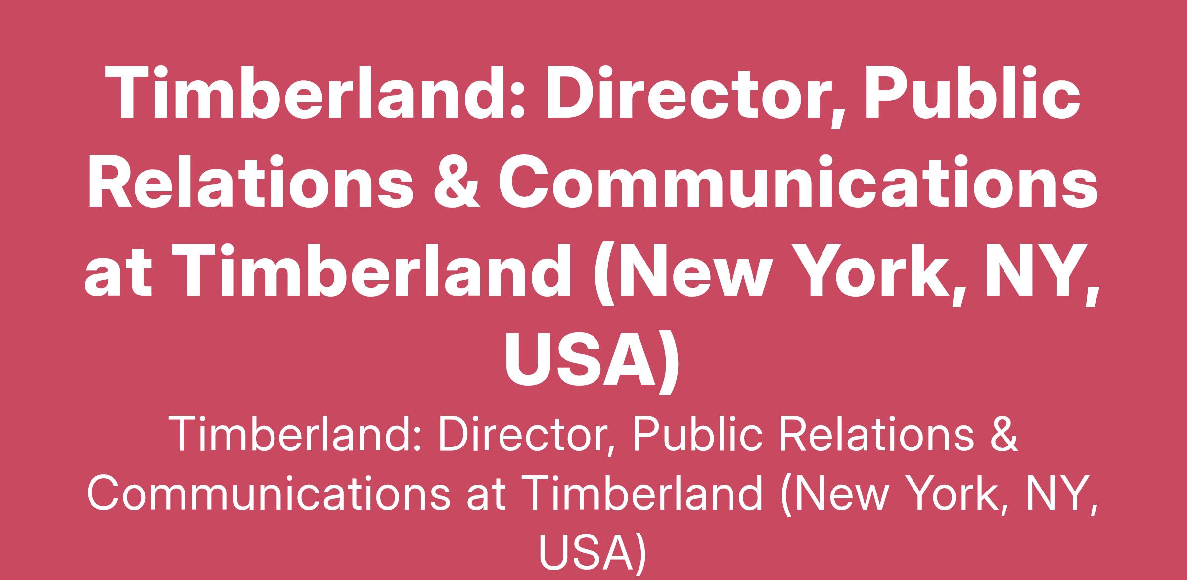 Timberland: Director, Public Relations & Communications at Timberland (New York, NY, USA)
