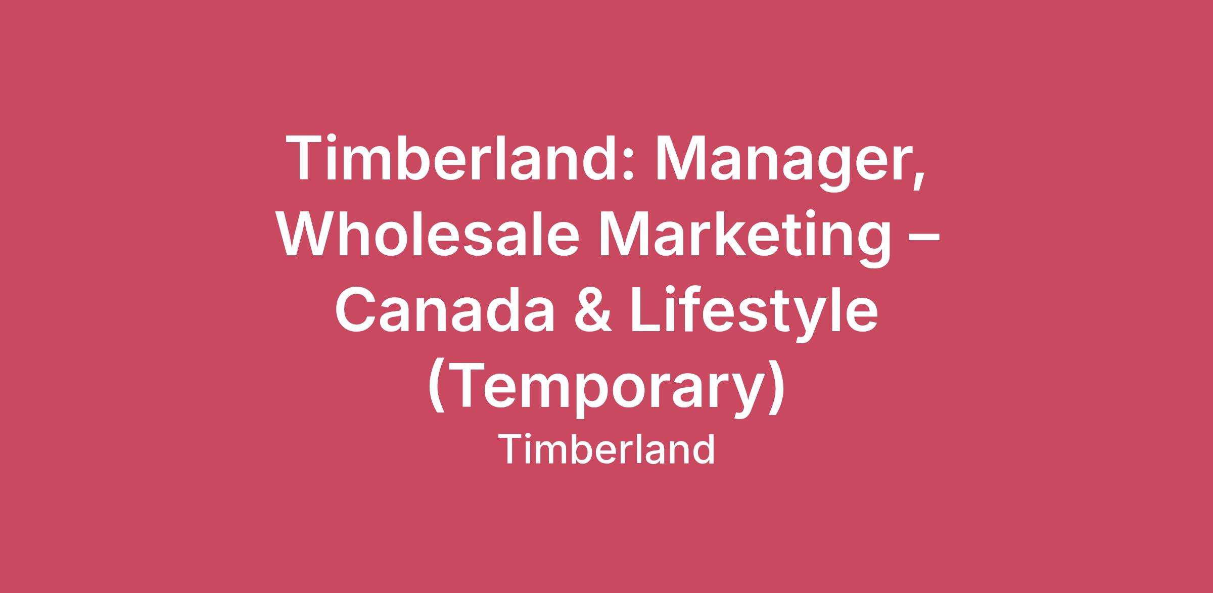 Timberland: Manager, Wholesale Marketing – Canada & Lifestyle (Temporary)