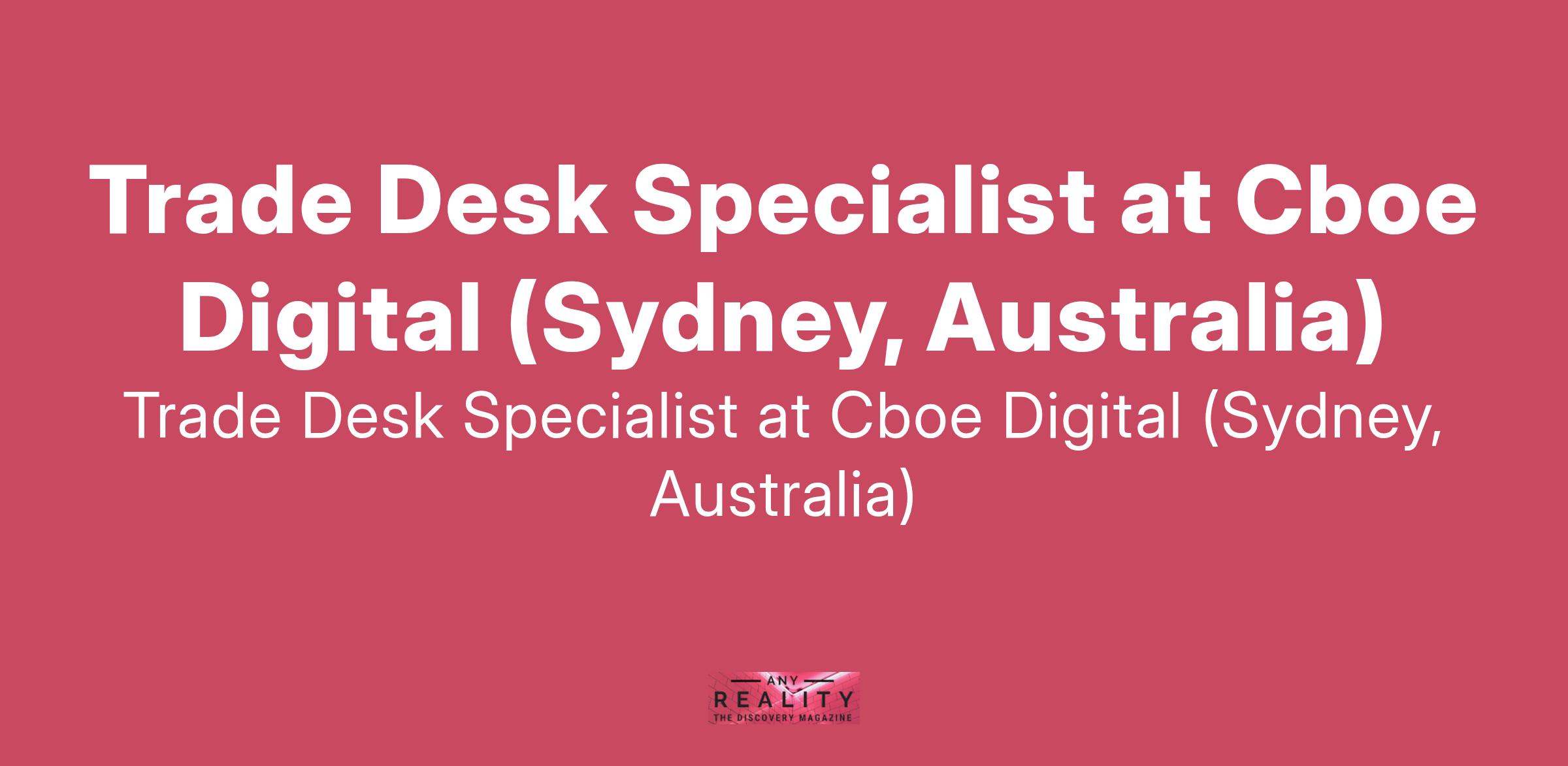 Trade Desk Specialist at Cboe Digital (Sydney, Australia)