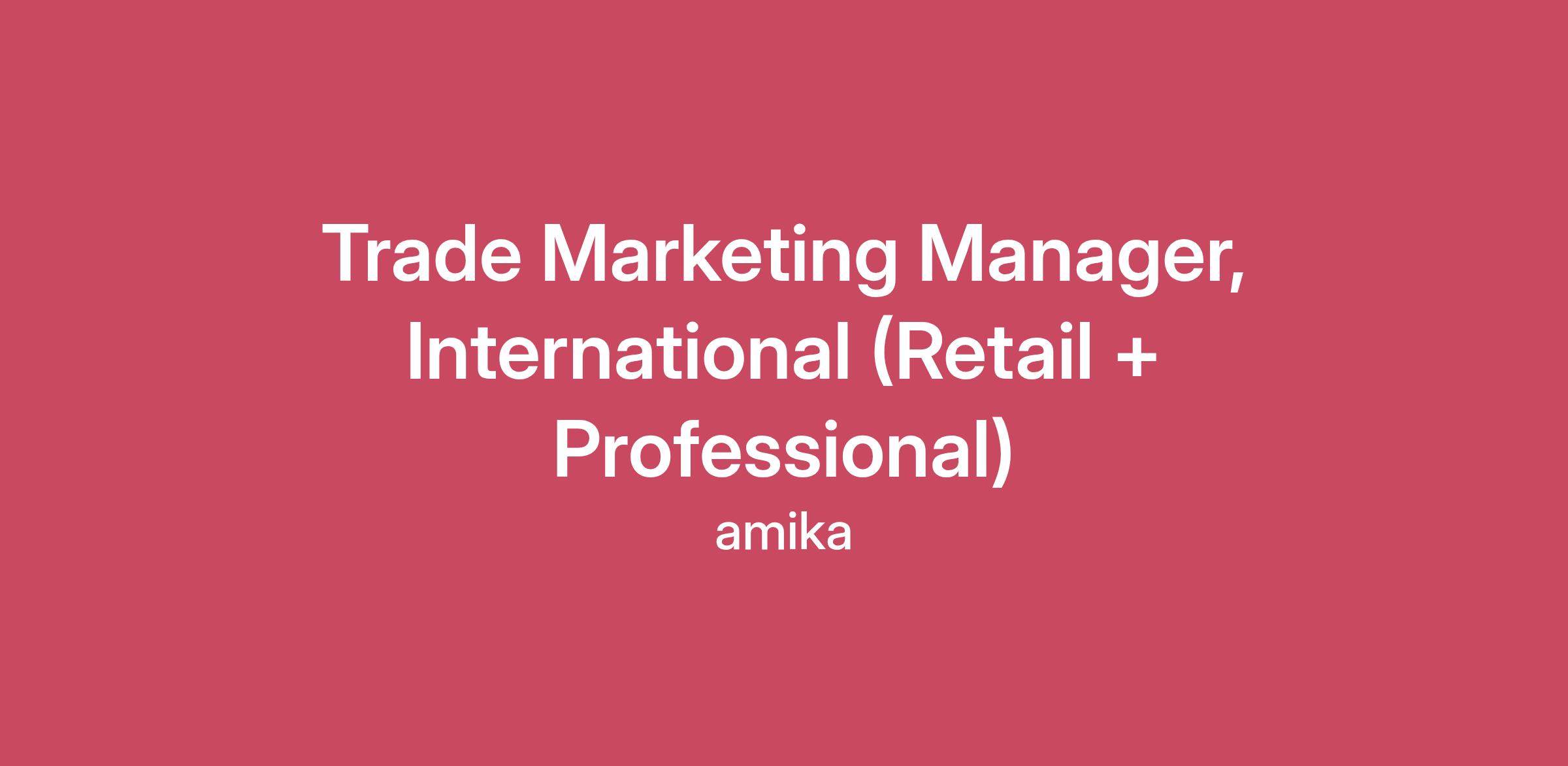 the job:amika means “friend,” and we bring our community good vibes, great hair, and bold creativity—everywhere we show up. We’re looking for a passionate, globally minded Trade Marketing Manager to support and grow our international business across end consumer retail such as, but not limited to, Sephora and Amazon, with a primary focus on the UK and EU markets, and select global retail and professional salon distribution partners such as, but not limited to, Douglass, Boots, Space NK, Cult Beauty. This role is responsible for building and executing 360° trade marketing programs that drive both sell-in and sell-through, elevate brand storytelling at retail and in salons, and deliver best-in-class merchandising, education, and promotional experiences across diverse international markets.location: remote, preferred location london + paris what you'll do:International Channel Strategy & 360° ActivationTranslate global brand campaigns into market-ready trade programs across all international retail partners including Sephora globally, distributor-led retail, professional salons, and digital platforms. Partner with international sales and marketing leadership to build annual and seasonal calendars supporting launches, hero franchises, promotions, education moments, and key retail events.Lead development of international trade toolkits including sell-in decks, merchandising guidelines, POS assets, promotional frameworks, and stylist- or advisor-facing storytelling.Adapt programs to account for regional nuances in shopper behavior, retail standards, promotional mechanics, and distributor capabilities.Collaborate with education teams to align on training needs, artistry support, backbar initiatives, and event programming. Retail, Merchandising & In-Store ExcellenceOwn visual merchandising briefs and execution across all international retail partners and distributor-managed doors.Ensure all assets, artwork, copy, and specs are delivered accurately and on time.Partner cross-functionally to ensure commercial readiness for launches and promotions. Professional & Stylist EngagementSupport professional salon and distributor partners with education-led sell-through programs.Equip distributor sales teams and educators with compelling tools.Support classes, events, and in-store activations where applicable. Distributor & Retail Partner CollaborationServe as a trade marketing partner to international retail teams and local distributors.Participate in joint business planning, line reviews, and quarterly planning.Manage submissions, timelines, and internal alignment. Insights, Performance & OptimizationAnalyze performance by market, retailer, distributor, and SKU.Track execution and assess ROI.Monitor trends and competitive activity.Build recap reports with insights and recommendations. Project Management & Budget OwnershipManage international trade marketing budgets. Track spend and manage invoicing.Oversee production and distribution of materials. Ensure projects meet timing, budget, and quality standards.must haves: 3–5+ years of trade, retail, and/or professional marketing experience. International retailer or distributor experience preferred; Sephora experience strongly preferred.Strong communicator and storyteller.Data-curious and analytically minded.Highly organized and collaborative.Aligned with amika’s inclusive, joyful, and community-driven values.nice to haves: Professional salon or education experienceInternational Sephora merchandising familiarityHaircare category experienceready to apply?please click the link below that will bring you to our careers page where you can submit your application + resume (cover letter optional). a member of our team will be in touch soon!