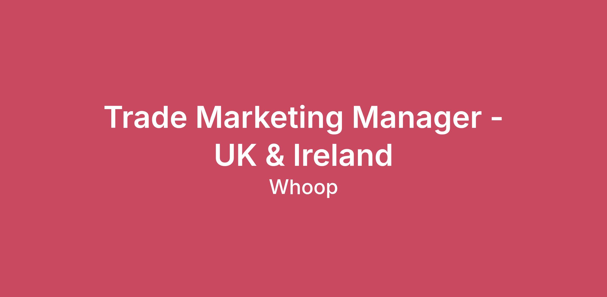 At WHOOP, we're on a mission to unlock human performance and healthspan. WHOOP empowers members to perform at a higher level through a deeper understanding of their bodies and daily lives. We are seeking an experienced Trade Marketing Manager to drive and scale WHOOP’s retail marketing initiatives in third party retail across the UK & Ire. Reporting to the EU Trade Marketing Lead, this role is pivotal in shaping WHOOP’s physical and digital retail footprint. You’ll lead the planning, design, execution, and performance analysis of in-store and online marketing initiatives, ensuring a seamless and impactful brand experience across all retail channels. This role requires a proven track record in managing high-value accounts, fostering strong relationships, and delivering on targets. Experience in delivering cohesive marketing strategies to drive sell-through in retail and via distribution partners, to support the growth of WHOOP’s regional brand presence. You will work cross-functionally with teams such as Sales, Brand Marketing, Visual Merchandising, Creative and Apparel & Accessories to develop impactful campaigns, equip partners with the right tools, and ensure that WHOOP is effectively represented in all trade channels. This position is ideal for someone who thrives on both strategic planning and hands-on execution, with a strong grasp of regional market trends and customer preferences, ready to make a lasting impact in a fast-growing, dynamic market. \nRESPONSIBILITIES: Develop and execute omnichannel trade marketing plans to drive awareness, acquisition, and engagement through retail and distribution channels in UK & Ire. Localise global marketing initiatives and assets to align with regional market trends, cultural nuances, and retail partner needs, ensuring brand consistency across all touchpoints. Work alongside brand marketing & commercial teams to enhance WHOOP brand positioning across the UK & Ire region. Brief, create and deploy effective point-of-sale (POS) materials, in-store displays, ATL and digital activation across social, CRM and online platforms. Develop and manage training initiatives for retail associates to boost product knowledge and customer engagement. Use data to analyze campaign performance and optimise for future success Plan and execute trade and retail events—including partner activations, experiential pop-ups and trade initiatives to enhance brand visibility, drive sell-through, and support product launches across the region. Monitor account and activity performance, leveraging sales and market insights to inform trade marketing strategies, optimize partner pipelines, and maximize ROI across omni-channel efforts. Manage budgets and external vendors to ensure efficient and high-quality execution of marketing campaigns and activations. Work with EU Trade Marketing Lead to assess European market trends, competitor positioning, pricing trends, and customer needs to deliver actionable insights that shape retailer pipelines and marketing strategies. Partner with Sales, Brand Marketing, Visual Merchandising, and Creative teams to build and deliver integrated campaigns, promotional plans, and training initiatives that elevate WHOOP’s in-store and digital presence. Build and maintain strong relationships with regional clusters to drive alignment across operations, marketing, product, and finance and ultimate commercial success. QUALIFICATIONS: Fluent in English, with exceptional written and verbal communication is essential. Additional languages are a bonus - please reference them in your application. 5+ years of experience in trade marketing, brand marketing, or retail marketing, ideally within the healthtech, consumer electronics, or premium consumer goods space. Experience with distributor and third party retail partner relationships in the UK & Ire, including support for in-store activations and events. Deep understanding of the UK & Ire with proven experience adapting marketing strategies to local market dynamics and consumer behaviors. Proven ability to execute high-quality omni-channel campaigns across in-store and online activations. Ability to manage multiple priorities in a fast-paced environment and make data-driven decisions. Strong cross-functional and geographical collaboration skills as well as excellent communication, negotiation, and relationship-building with key stakeholders. Willingness to travel (25%), across the UK & Ire, Europe and visits to WHOOP HQ in Boston, MA. Applicant must reside in either Ireland or the UK. \nThis role offers an exciting opportunity to help shape the regional presence of a dynamic brand, applying your expertise to drive consumer engagement and brand loyalty. If you're ready to advance your career in a fast-growing company, we encourage you to apply! Interested in the role, but don’t meet every qualification? We encourage you to still apply! At WHOOP, we believe there is much more to a candidate than what is written on paper, and we value character as much as experience. As we continue to build a diverse and inclusive environment, we encourage anyone who is interested in this role to apply.
