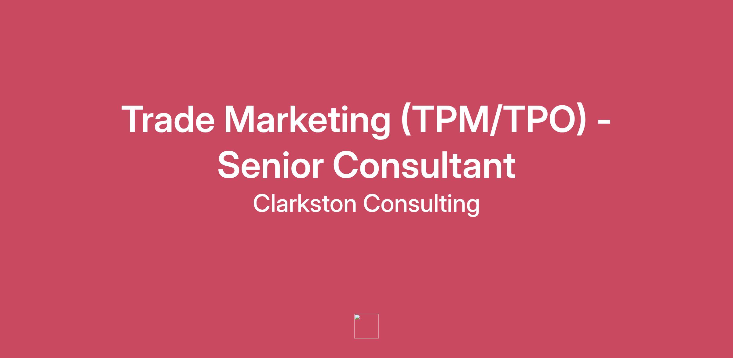 This job is posted in multiple locations. When not at a client site, consultants work from their home office. Relocation is not required.Clarkston Consulting is seeking motivated, self-driven leaders who are energized by team results and interested in joining a firm that values its culture and people as its biggest strengths. Come join us as a Trade Marketing (TPM/TPO) - Senior Consultant, and in this role you will deliver creative business solutions to our market-leading clients in the consumer products, and retail industries. Together, we can find the answers to our clients' most challenging business problems through a combination of our industry expertise, business process knowledge, and consulting excellence. What You’ll Do As a Trade Marketing (TPM/TPO) - Senior Consultant at Clarkston you will: Help leading consumer goods clients to define their trade promotion objectives, challenges, and operational processes Design and implement trade promotion optimization strategies that align with business goals. Leverage your experience with one or more trade systems (e.g., Salesforce, Telus, Kantar XTEL, etc.) to facilitate all aspects of a TPM implementation Translate business processes into functional requirements. This may include recommendations on leveraging current technologies and assessing software vendors based on organizational needs Share best practices, industry knowledge, and personal expertise to educate both clients and fellow consultants, in formal and ad hoc settings Assist in the creation and management of project plans and timelines, define project deliverables, identify and track issues and their resolution, and help to manage project scope and requirements Earn trusted client status and build relationships that extend beyond the project’s lifecycle Conduct knowledge transfer and training of end-users, including sharing best practices How You’ll Grow Beyond your day-to-day responsibilities, throughout your career at Clarkston you will: Receive the support and mentorship of your Clarkston colleagues and leaders Expand your existing skillset with internal and external professional development opportunities What We’re Looking For Minimum of 5 years of experience working in TPM, with relevant work experience in trade promotion optimization and/or revenue growth management In-depth understanding of Trade processes to include deductions, settlements, trade check requests, trade accruals, and trade finance (interfaces, reporting, etc.) Demonstrated experience as a TPM consultant working in an established professional services organization Flexibility and adaptability - our Senior Consultants work on all aspects of the trade process and related process and technology initiatives Direct experience with TPM systems such as Salesforce, Telus, Kantar XTEL, and others 4-year degree from an accredited college or university Travel Statement Travel is an integral part of this role and is estimated to average 30-50%. This may vary based upon client and project needs. When not traveling, consultants work from their home office. Relocation is not required. More About ClarkstonFounded in 1991, Clarkston Consulting delivers technology and management solutions to market leaders in the life sciences, consumer products, and retail industries. At Clarkston, we cultivate success - for our clients, for our people, and for our firm. We utilize a team approach leveraging our collective expertise and industry knowledge to solve our clients’ business challenges.AI StatementClarkston values thoughtful and responsible AI use for resume writing, interview preparation, and research. However, real-time use of AI to generate or script answers during interviews - including video or live conversations - is strictly prohibited and will lead to disqualification. We seek candidates who show authenticity, good judgment, and genuine engagement throughout the process. Our benefits include: Comprehensive Health and Wellness Benefits (Medical, Dental, Vision, and more) 401k with company contributions Paid vacation, personal days, holidays, and sick leave Paid Parental Leave and Family Building Benefits (Adoption, Surrogacy, and Infertility Support) Life and Disability Insurance Training and Professional Development investments, Tuition Assistance, and more Visit Careers at Clarkston Consultingto learn more about our culture, benefits, and opportunities.Clarkston Consulting is an equal opportunity employer. We are committed to ensuring our firm is rich in diverse skills, competencies, strengths, personalities, and culture. We foster an inclusive environment that embraces the unique contributions of our people to further our purpose. Please visit Diversity @ Clarkston Consulting to learn more about our diversity initiatives.
